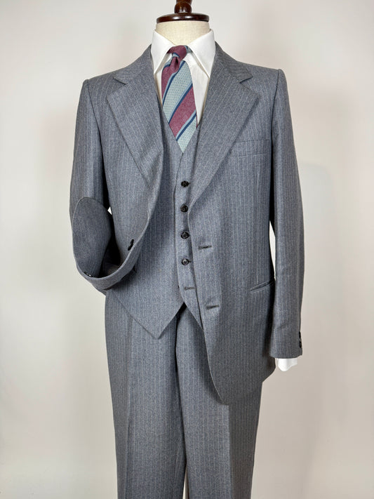 Completo 3 pezzi anni ‘70 flanella grigio medio gessato - tg. 50