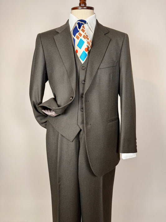 Completo 3 pezzi anni ‘70 marrone testa di moro gessato - tg. 50