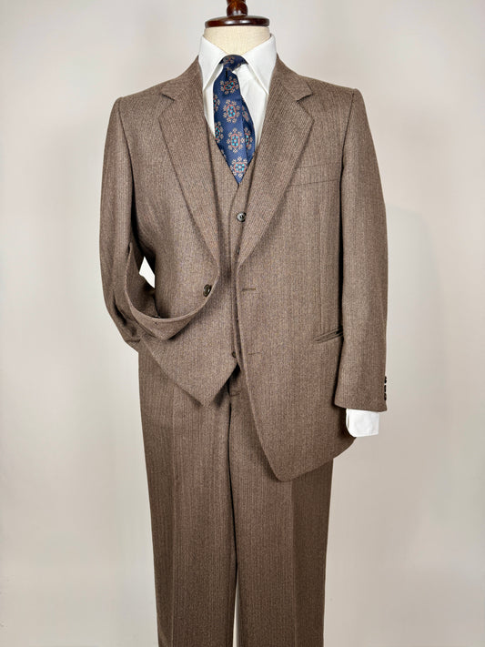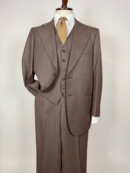 Completo 3 pezzi anni ‘70 marrone mélange - tg. 50/52 drop basso