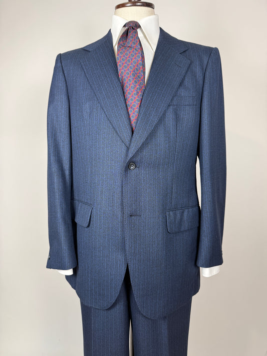 Completo anni ‘70 lana pettinata blu gessato - tg. 50