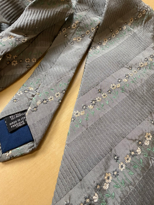 Cravatta Kenzo grigia ricamo floreale