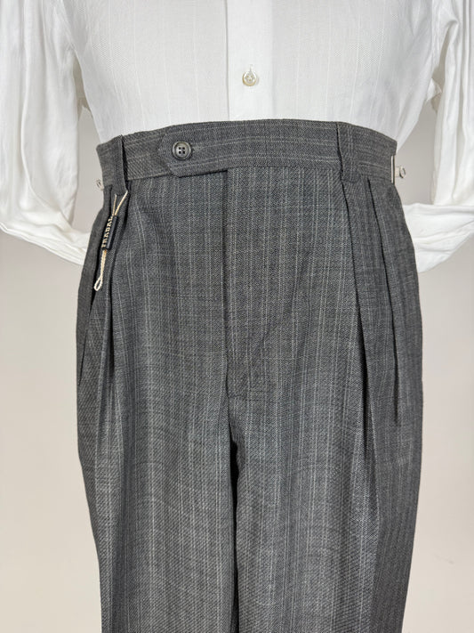Pantaloni anni '80 fresco lana grigio a righe (NOS) - tg. 46