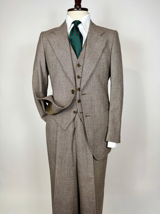Completo 3 pezzi Facis anni ‘70 flanella principe di Galles marrone - tg. 44