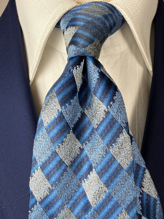 Cravatta Missoni fantasia reticolo blu oro rosso