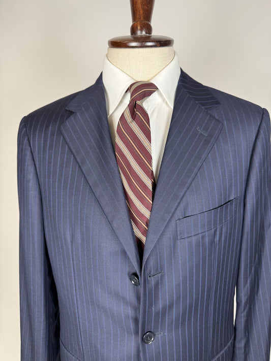 Completo Belvest doppiopetto anni ‘70 flanella blu gessato - tg. 50/52