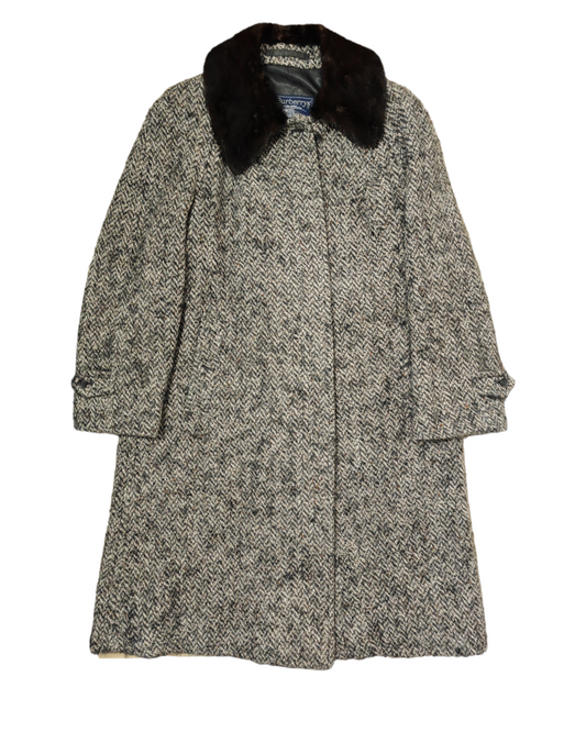 Cappotto Burberrys anni '80 in Irish tweed collo visone - tg. 46