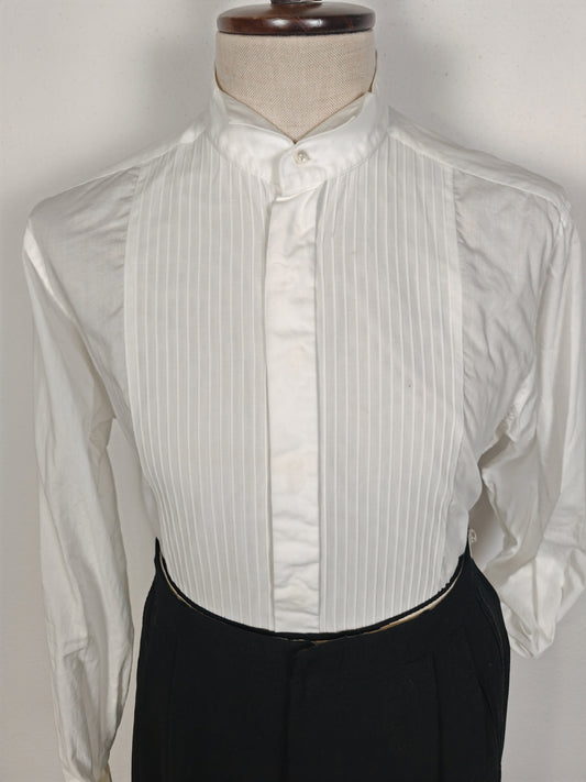 Camicia da smoking vintage collo diplomatico e sparato plissettato - tg. L/XL, collo 42/43