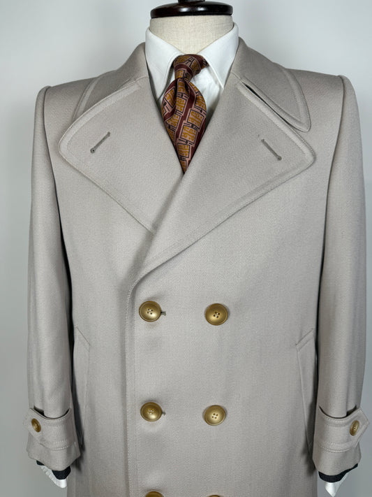 Cappotto doppiopetto anni ‘70 in twill di lana color avorio - tg. 46-48