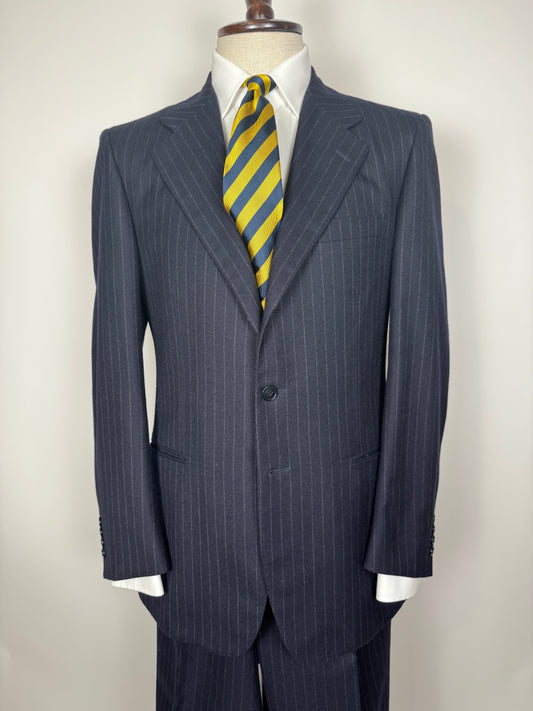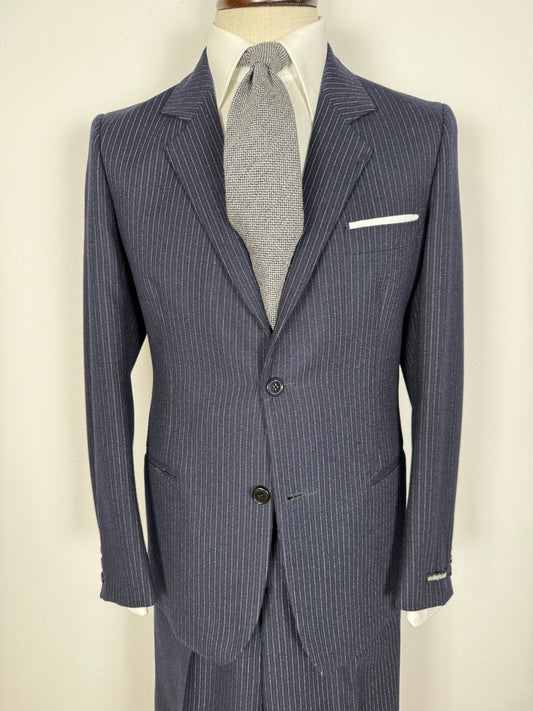Completo anni ‘80 in flanella inglese blu gessato - tg. 48