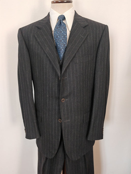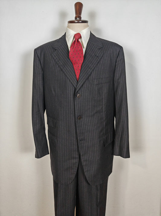 Completo Brioni doppiopetto anni '80 in flanella grigio gessato - tg. 46/48
