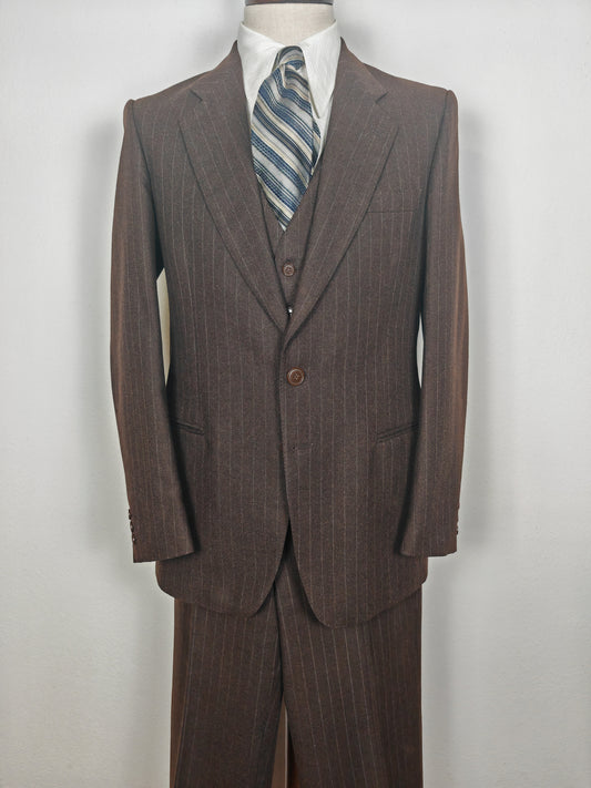 Completo 3 pezzi anni '70 in flanella marrone gessato - tg. 46/48
