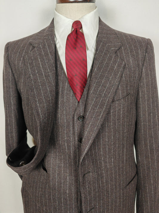 Completo 3 pezzi anni '70 marrone gessato in flanella - tg. 50