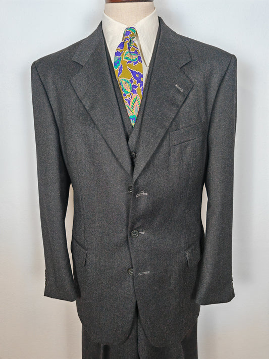 Completo 3 pezzi anni '90 in flanella grigio antracite - tg. 52/54