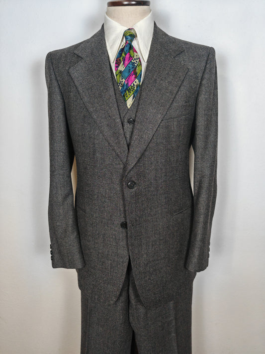 Completo 3 pezzi anni '70 grigio spigato - tg. 50