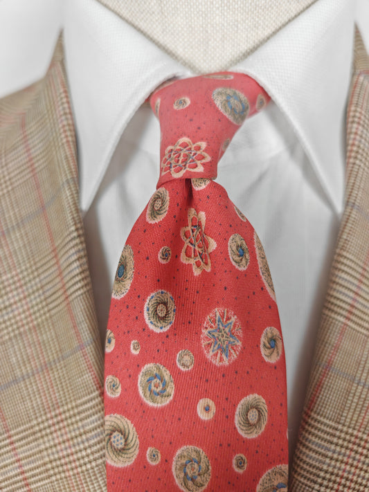 Cravatta Hermès 7050 TA rosso corallo con disegni astronomici
