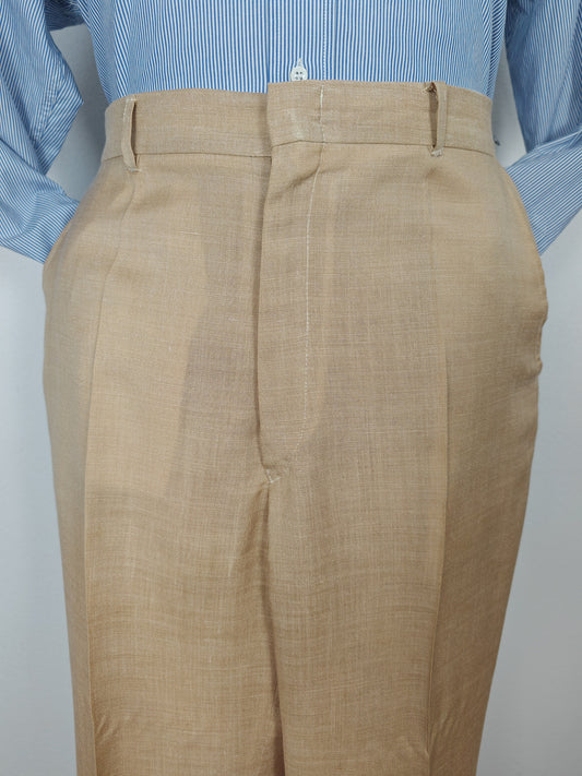 Pantalone anni '70 in tela misto lana beige - tg. 50