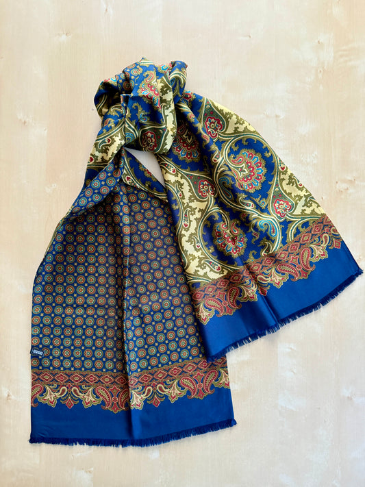 Sciarpa in seta paisley verde rossa e blu