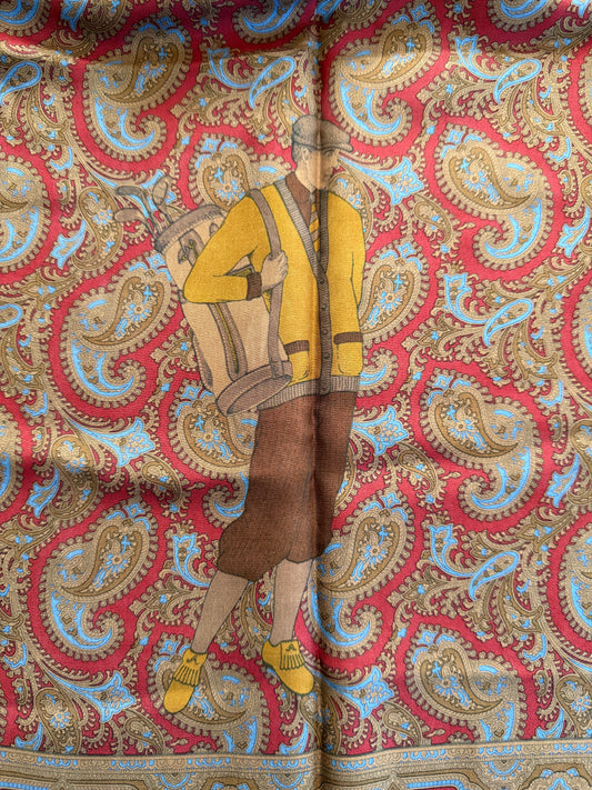 Sciarpa in seta paisley vintage rosso e cachi