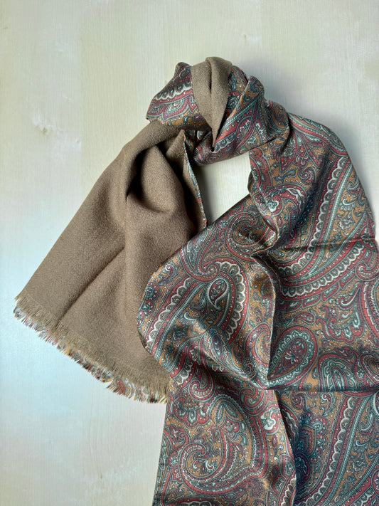 Sciarpa double face in seta paisley e cashmere-lana scozzese