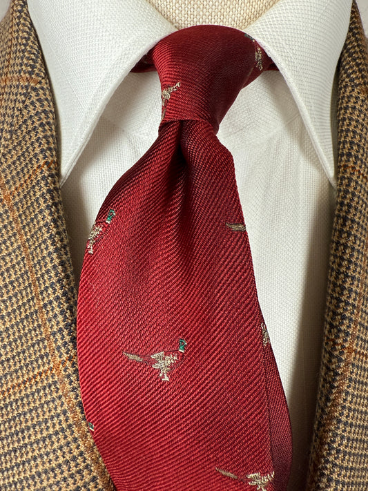 Cravatta De Paz vintage rossa con fagiani
