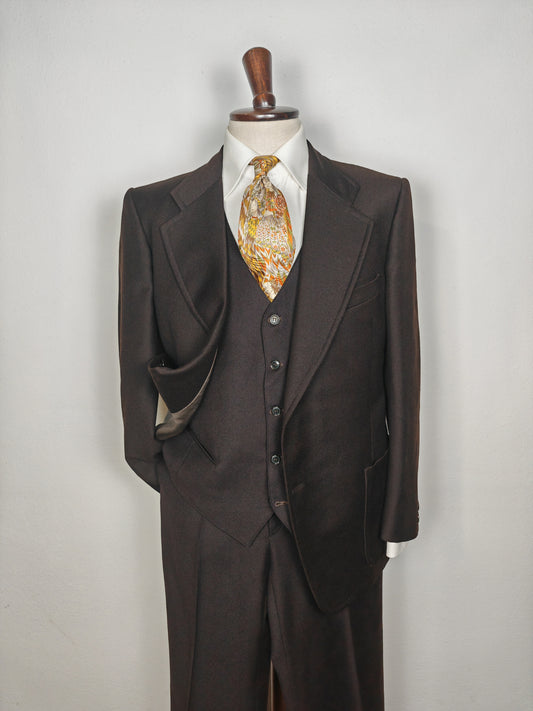Completo 3 pezzi anni '70 marrone gessato - tg. 46