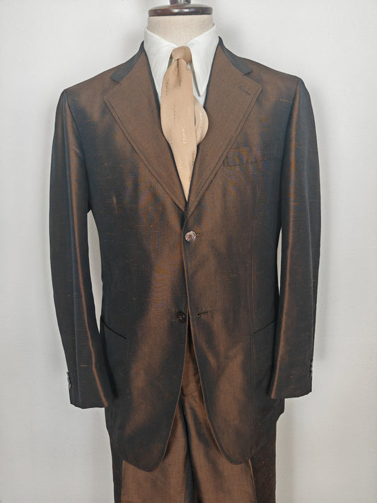 Completo anni '90 in pura seta shantung marrone - tg. 48/50