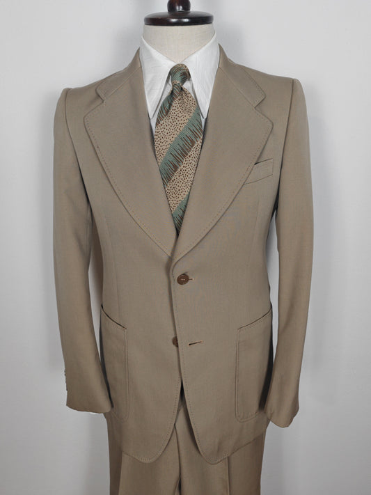 Completo anni '70 svasato in twill di lana color cachi - tg. 44