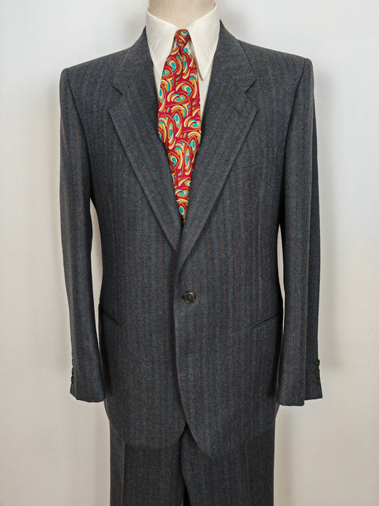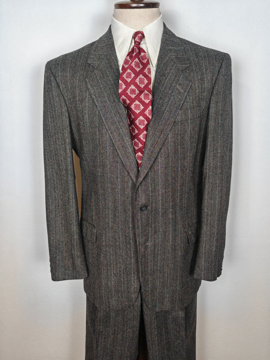 Completo anni '70/'80 tessuto Marzotto grigio a righe fresco lana - tg. 54/56