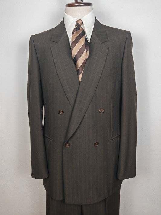 Completo doppiopetto anni '70 marrone gessato - tg. 48