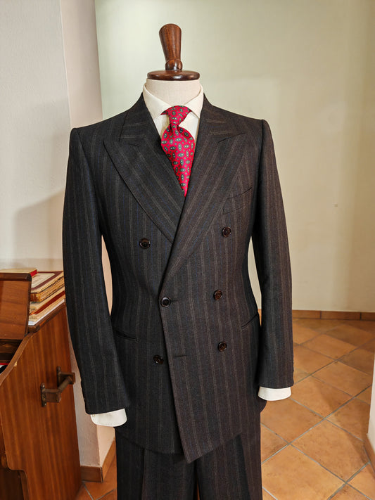 Completo gessato fresco lana Caruso, tess. Loro Piana Zelander - tg. 50
