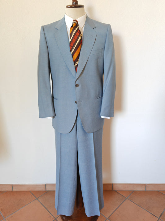 Completo doppiopetto sartoriale anni '70 in puro lino blu - tg. 46