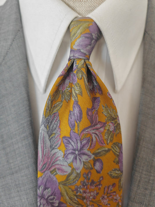 Sold outCravatta a fiori su fondo senape
