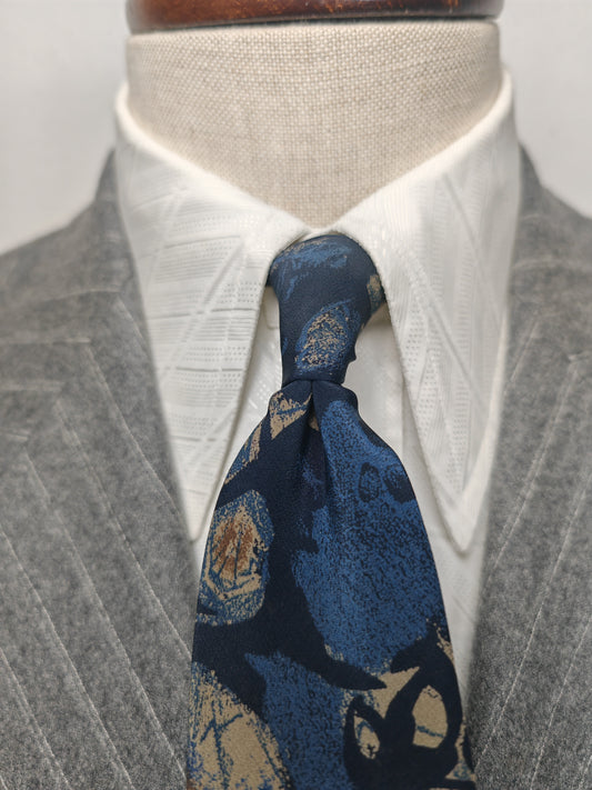 Cravatta Marinella blu micro fantasia, nuova con confezione