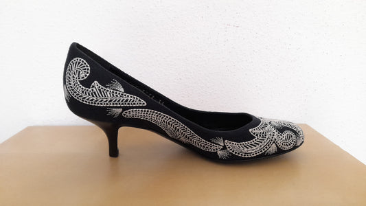 Ballerine Sergio Rossi tela ricamata - n. 35 tacco 5 cm