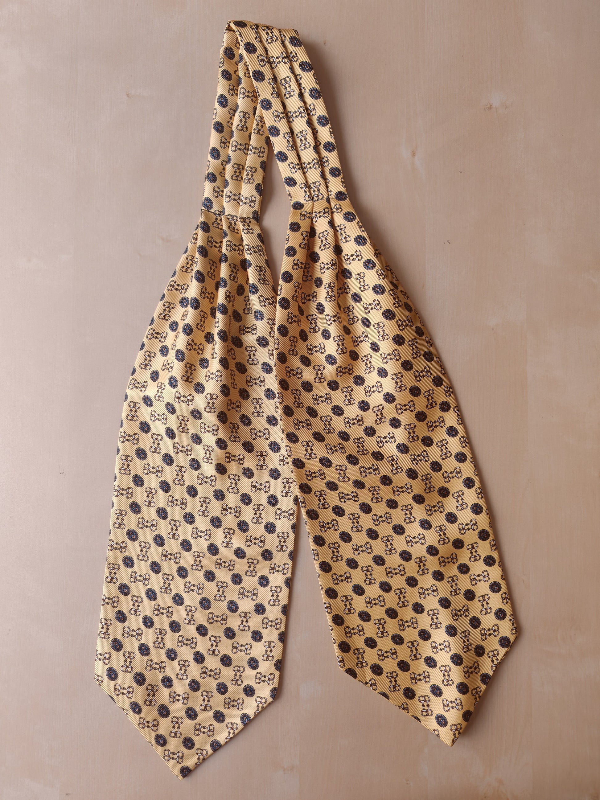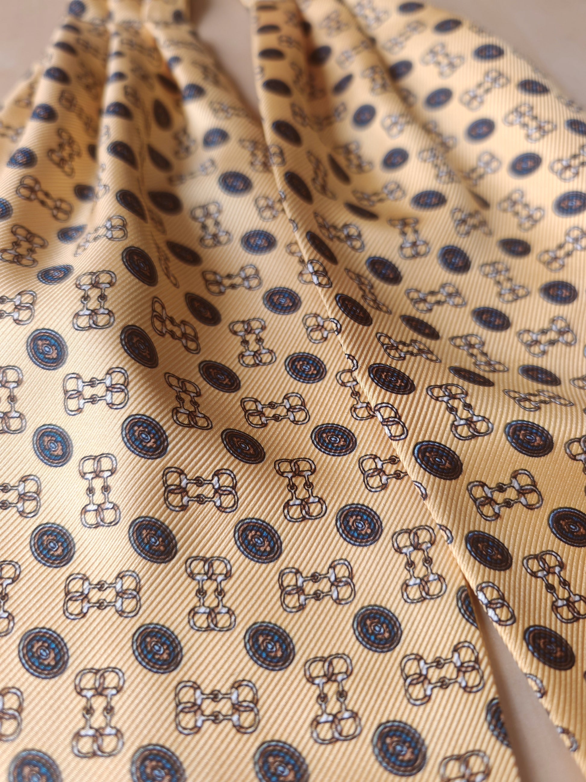 Ascot in seta giallo fantasia medaglioni e morsetti