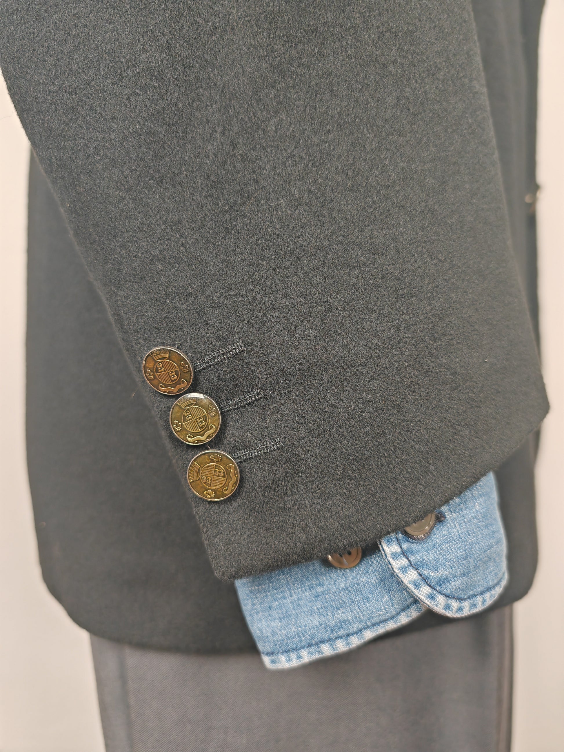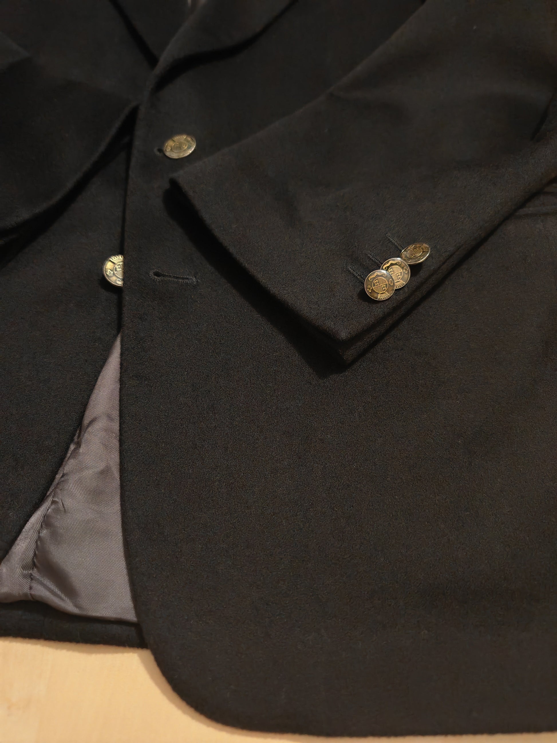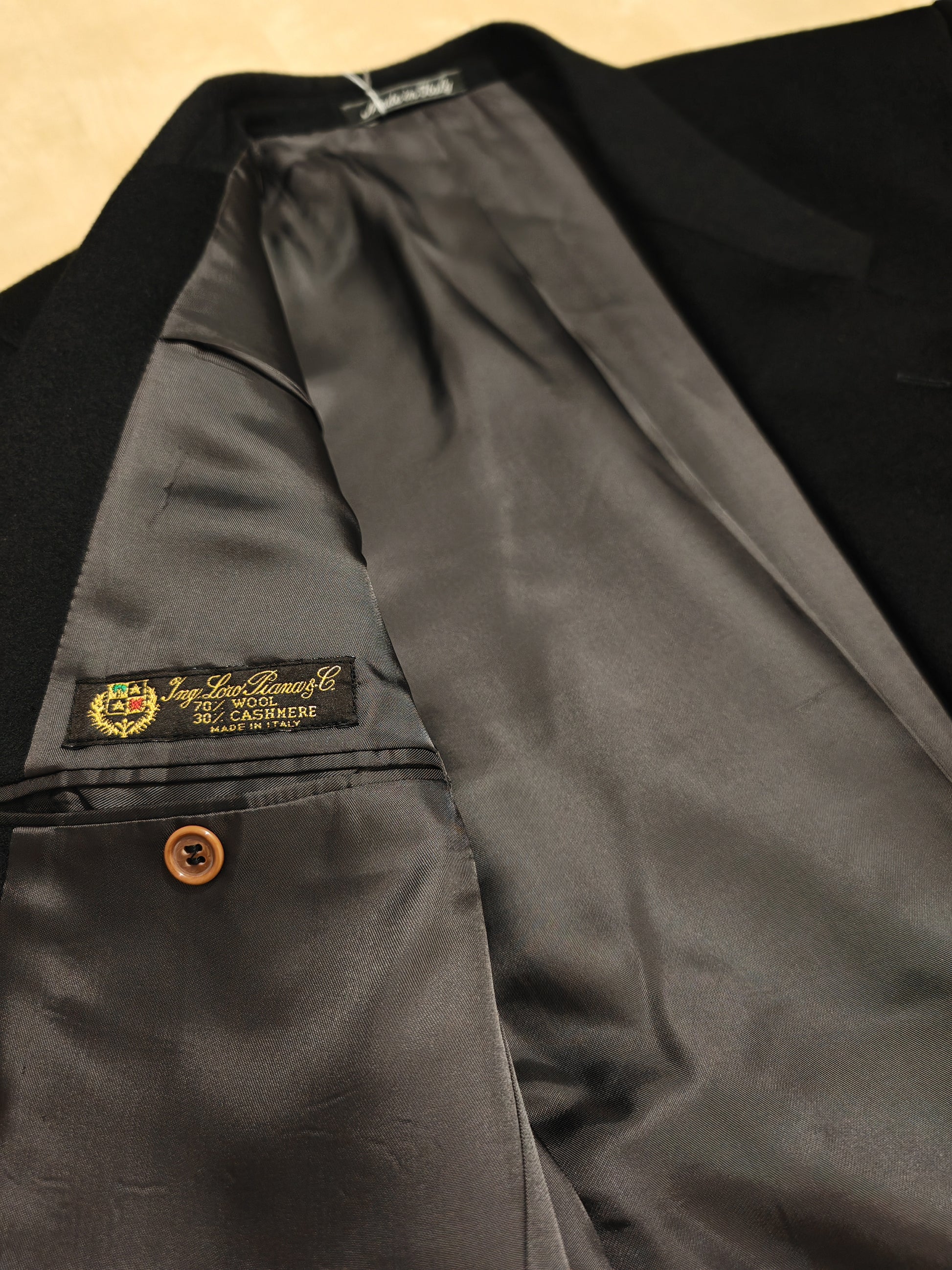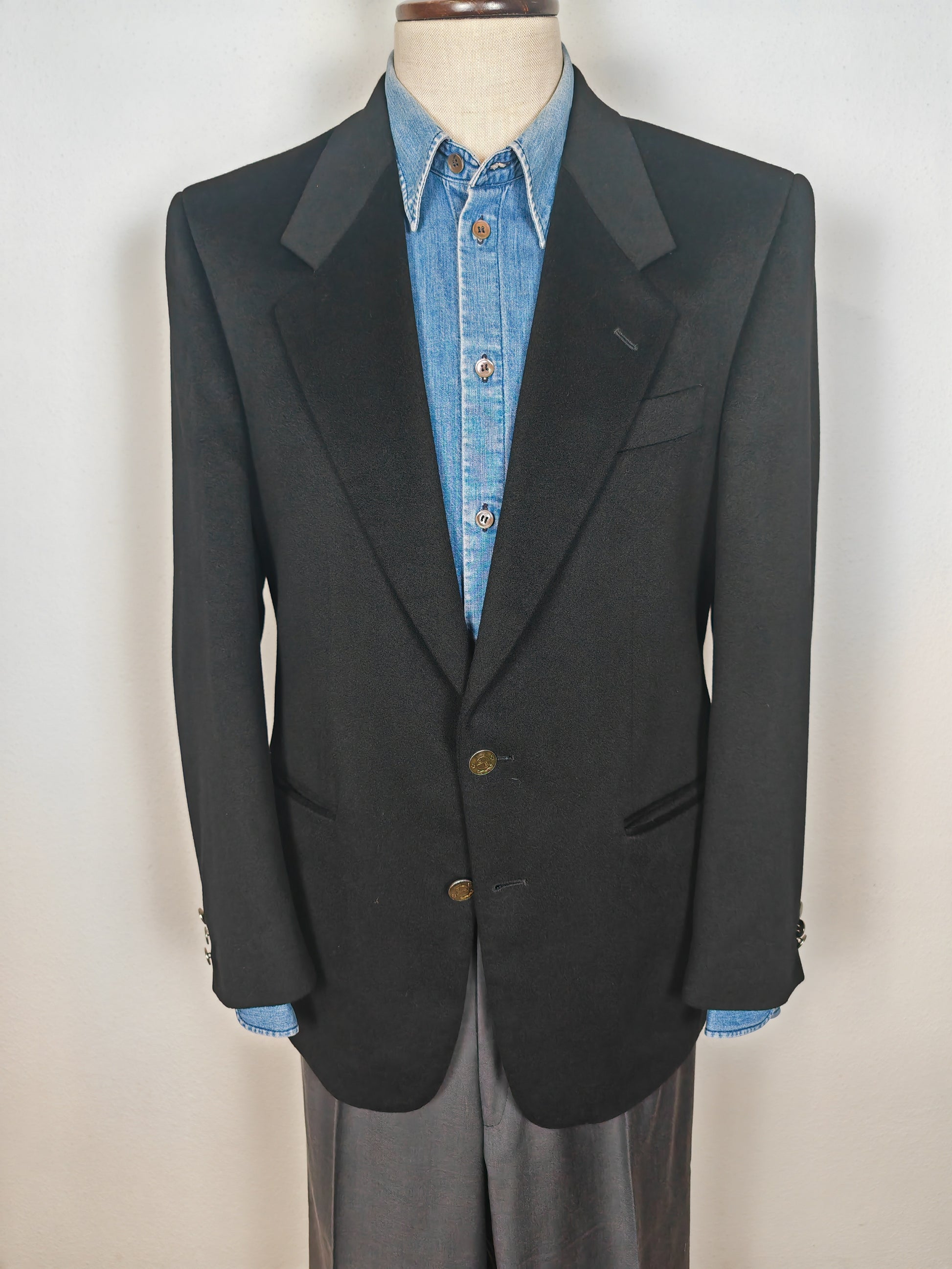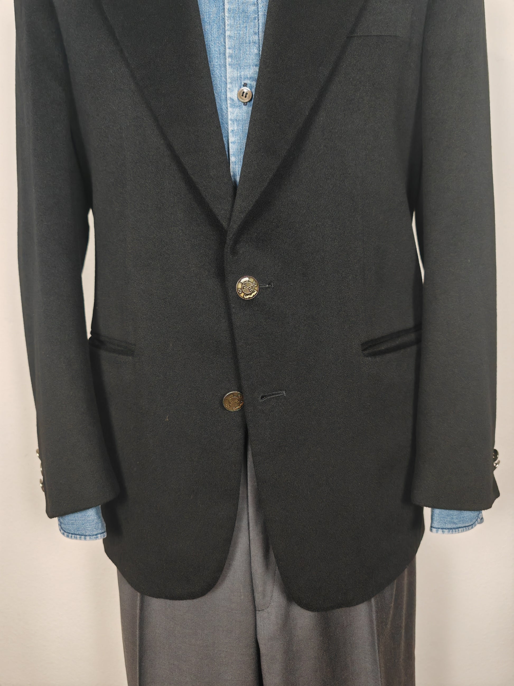 Blazer anni '80 confezionato con tessuto di Loro Piana, un bel panno 70% lana e 30% cashmere. Colore nero.