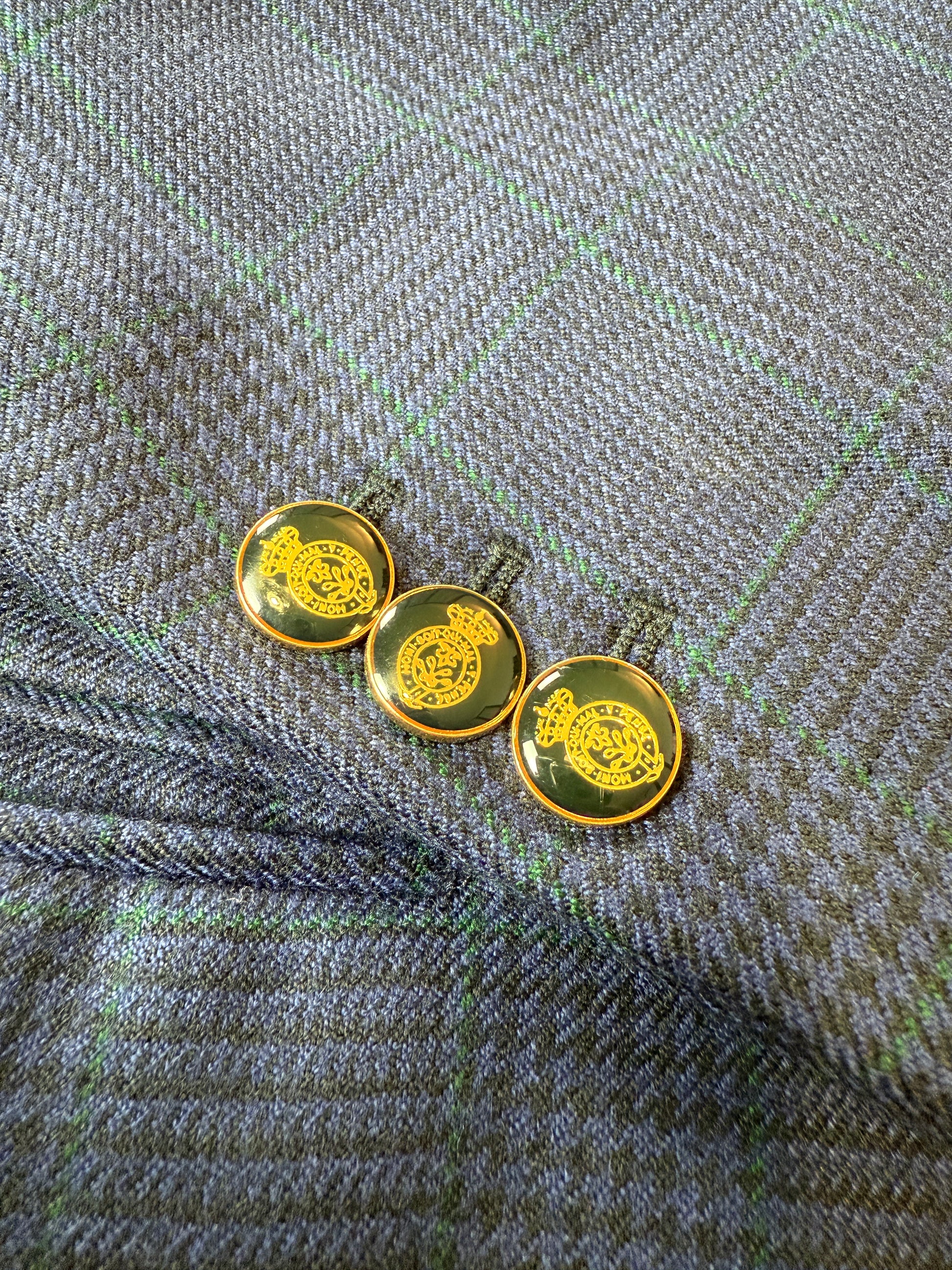 Bellissimi bottoni metallici resinati con stemma e motto Order of the Garter.