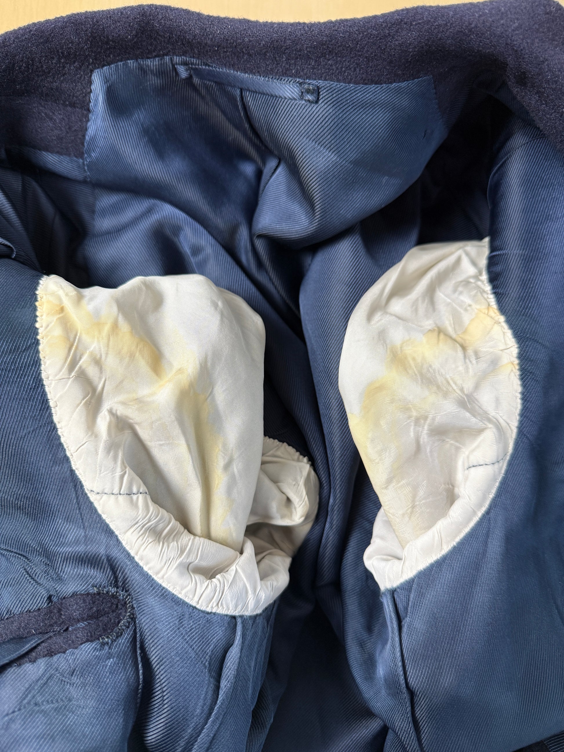 Condizioni generali ottime, ma è da segnalare la fodera interna macchiata a livello dei giromanica.