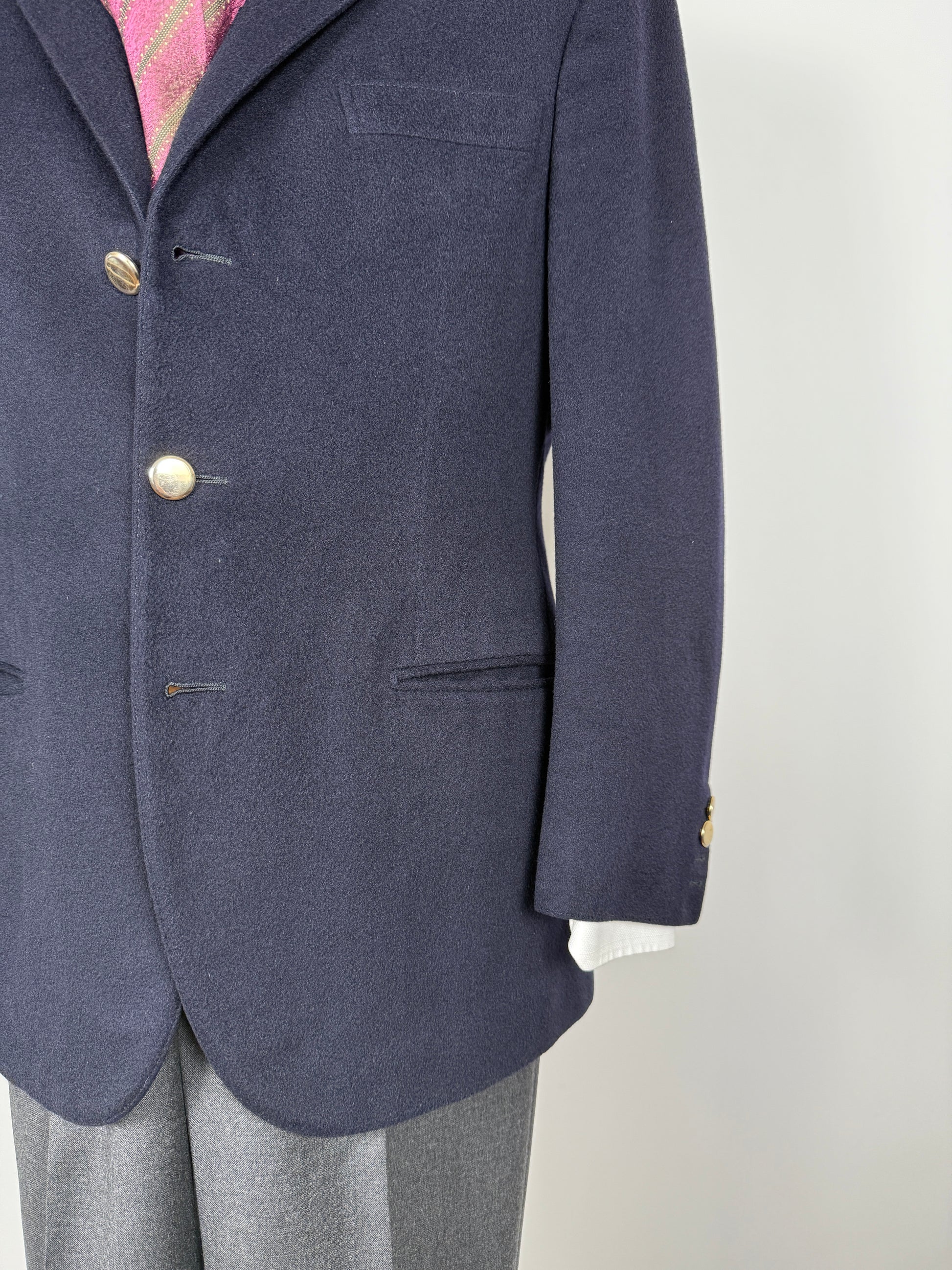 Navy blazer sartoriale anni ‘90 in panno lana e cashmere - tg. 48
