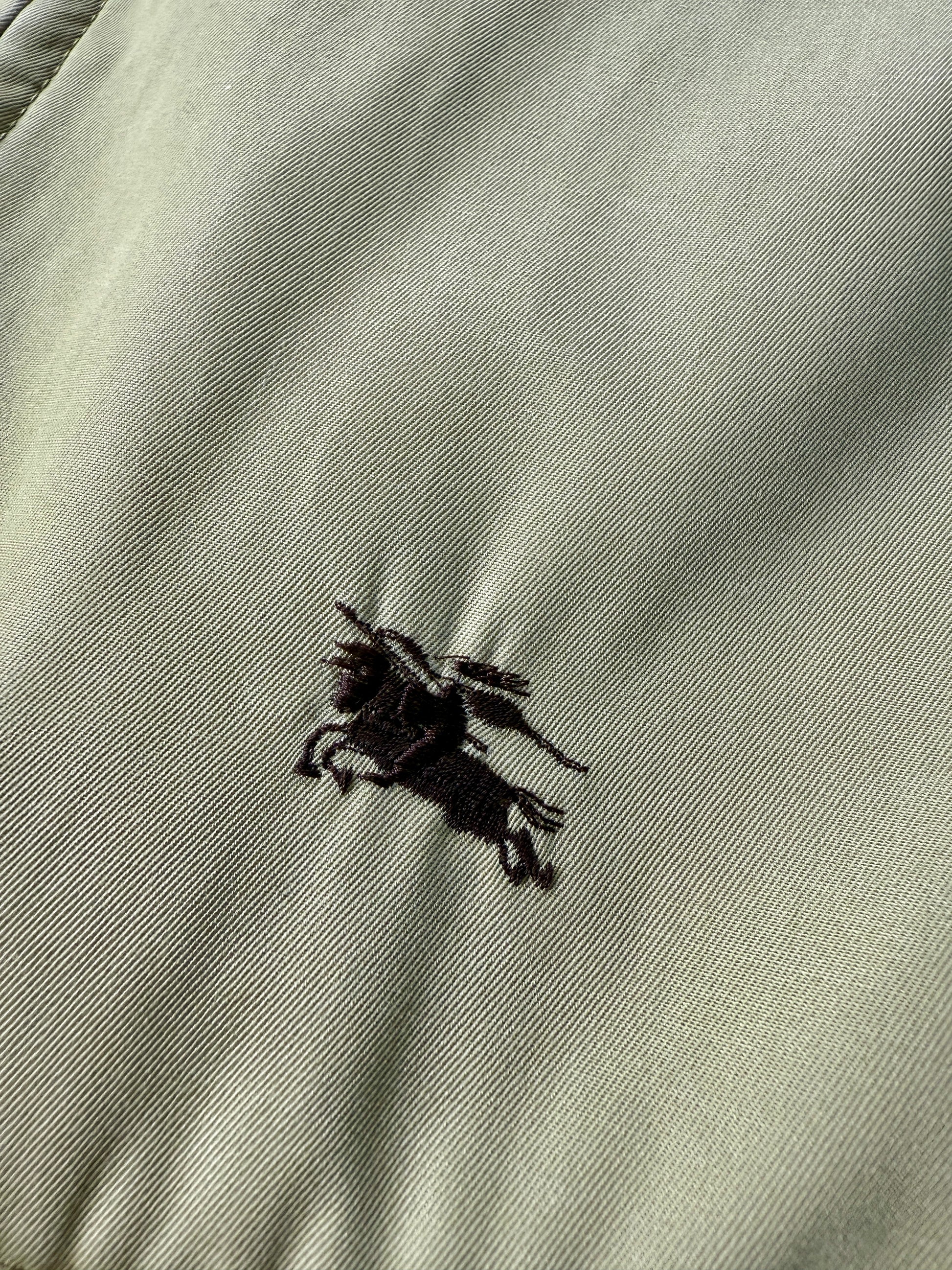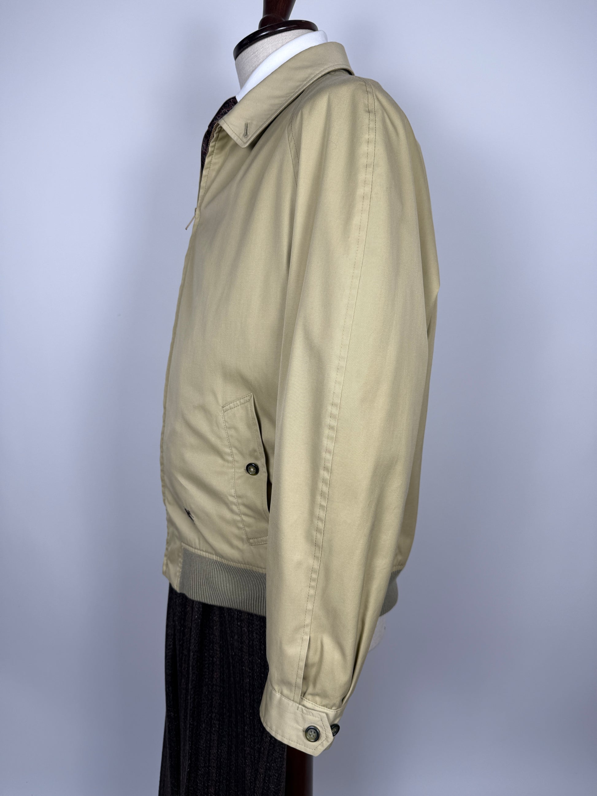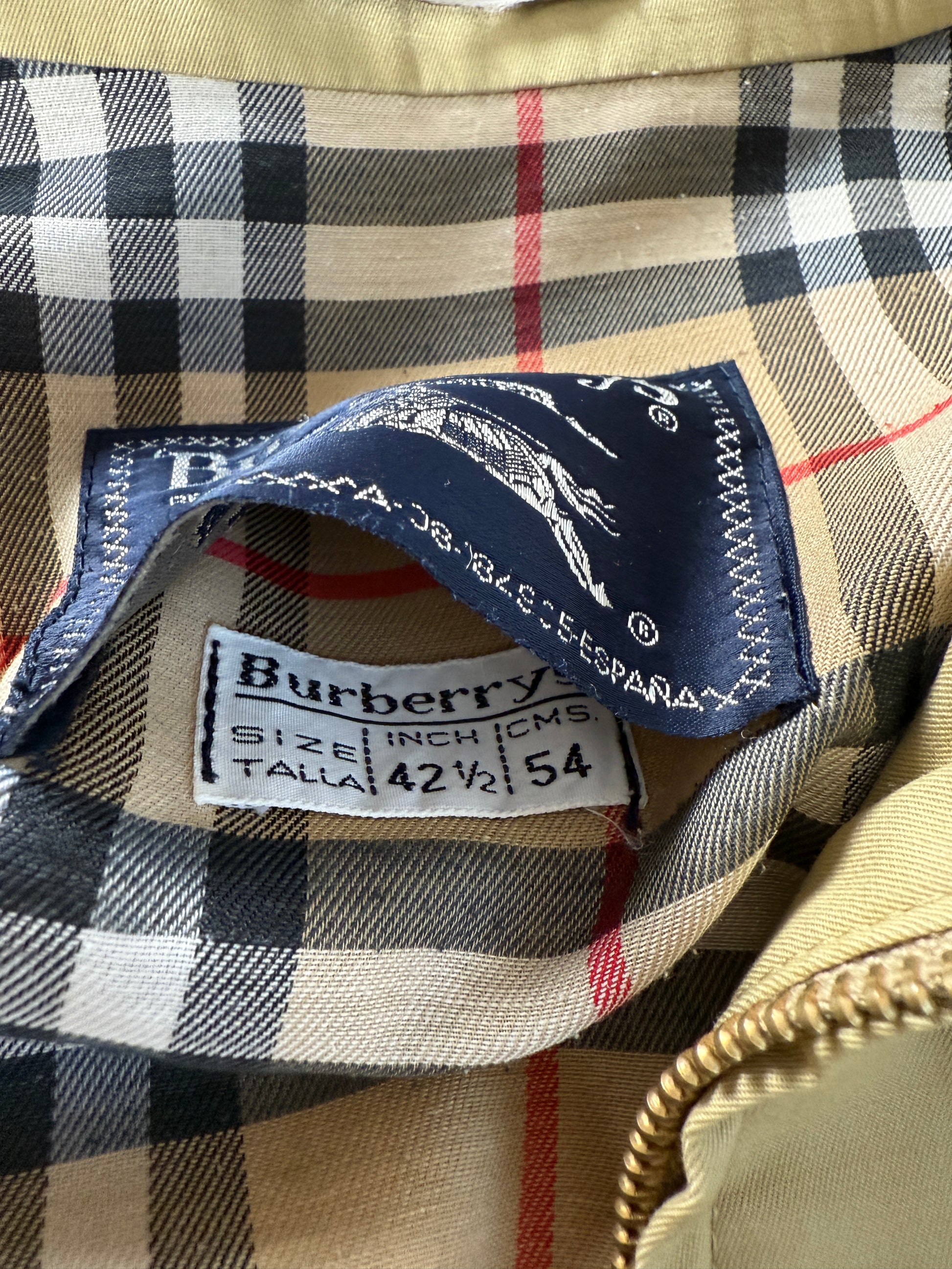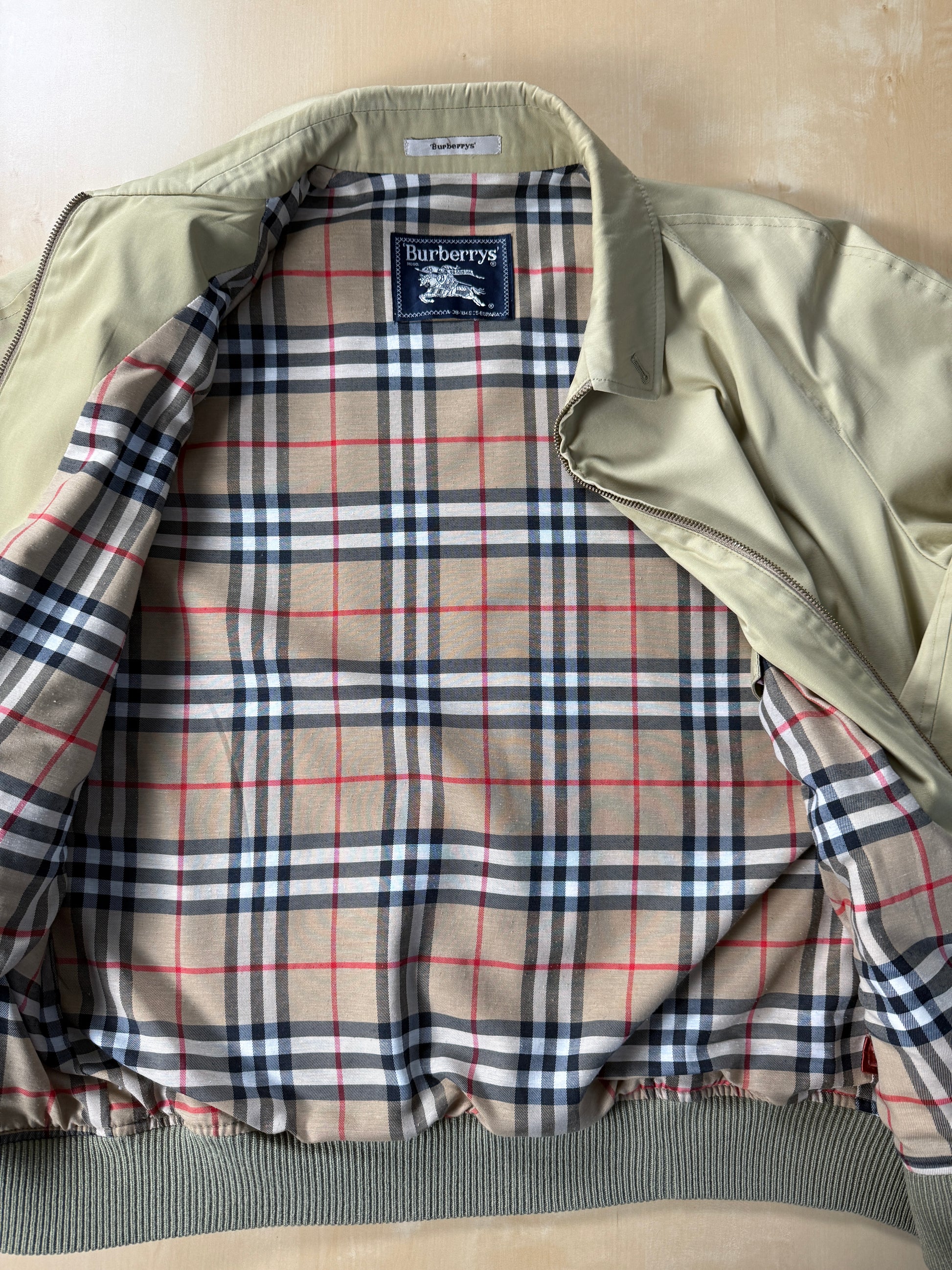 Giubbotto leggero Burberrys di confezione spagnola anni ‘80, con taglio da bomber ma ispirato ai classici soprabiti raglan.