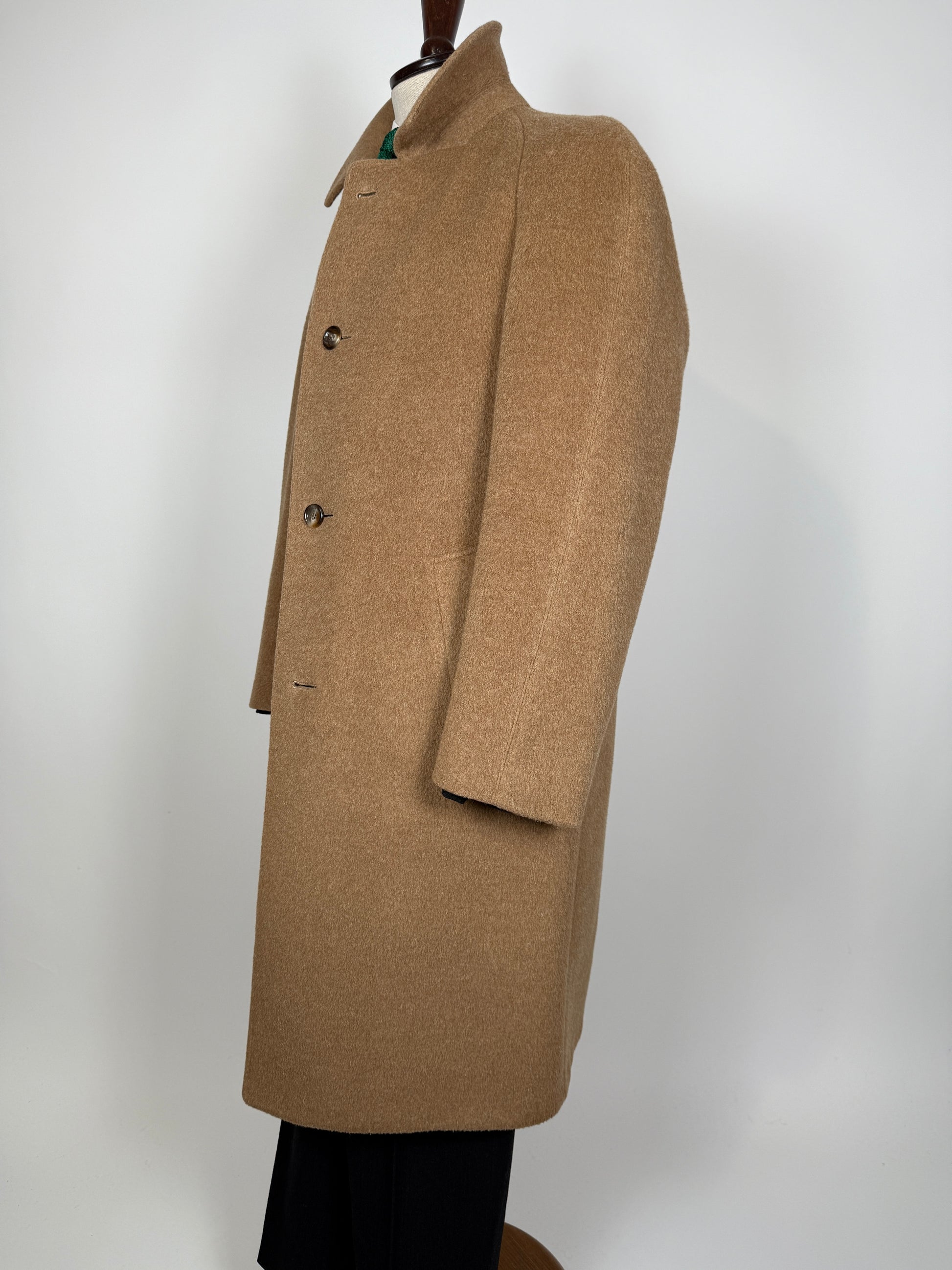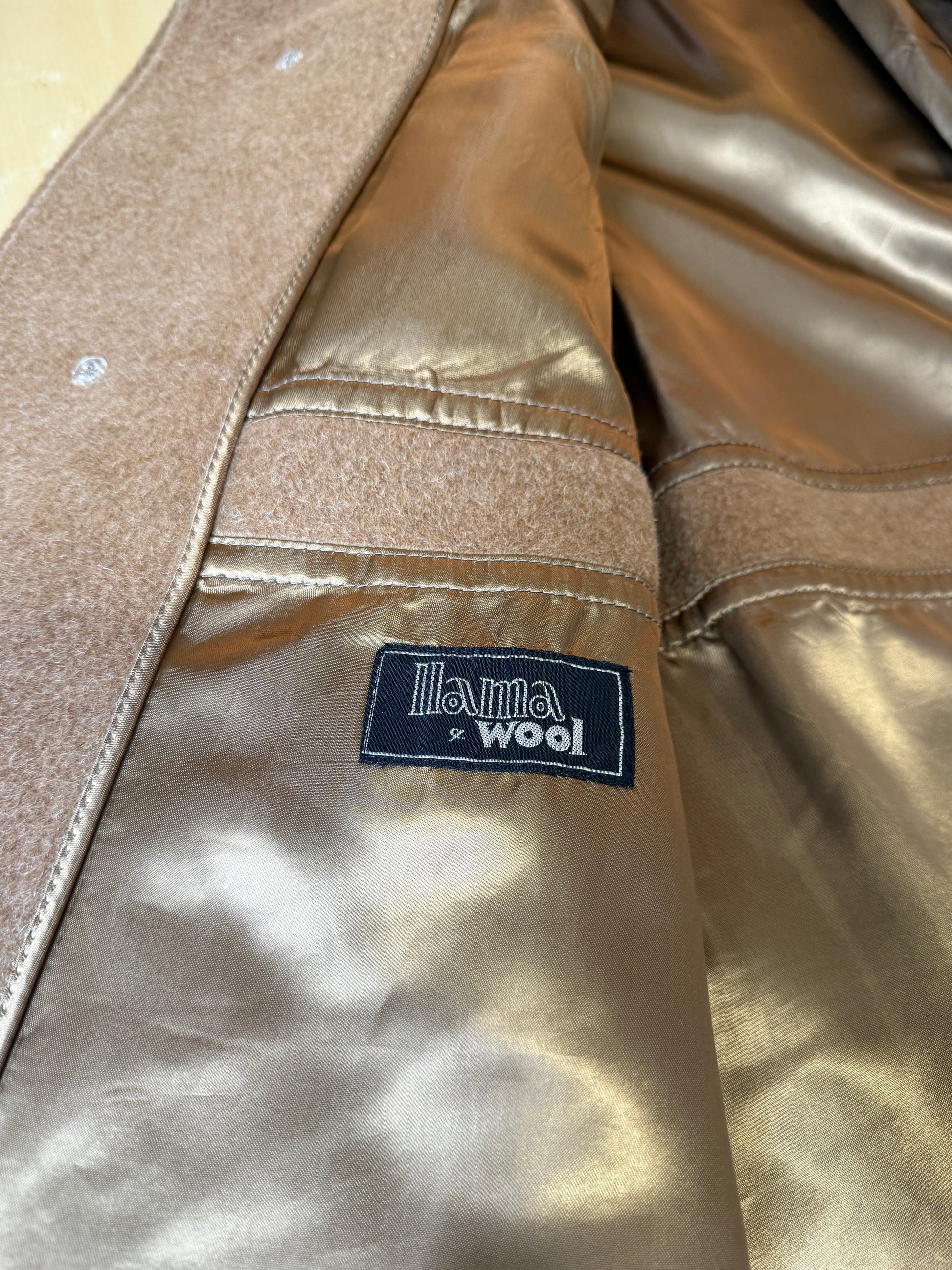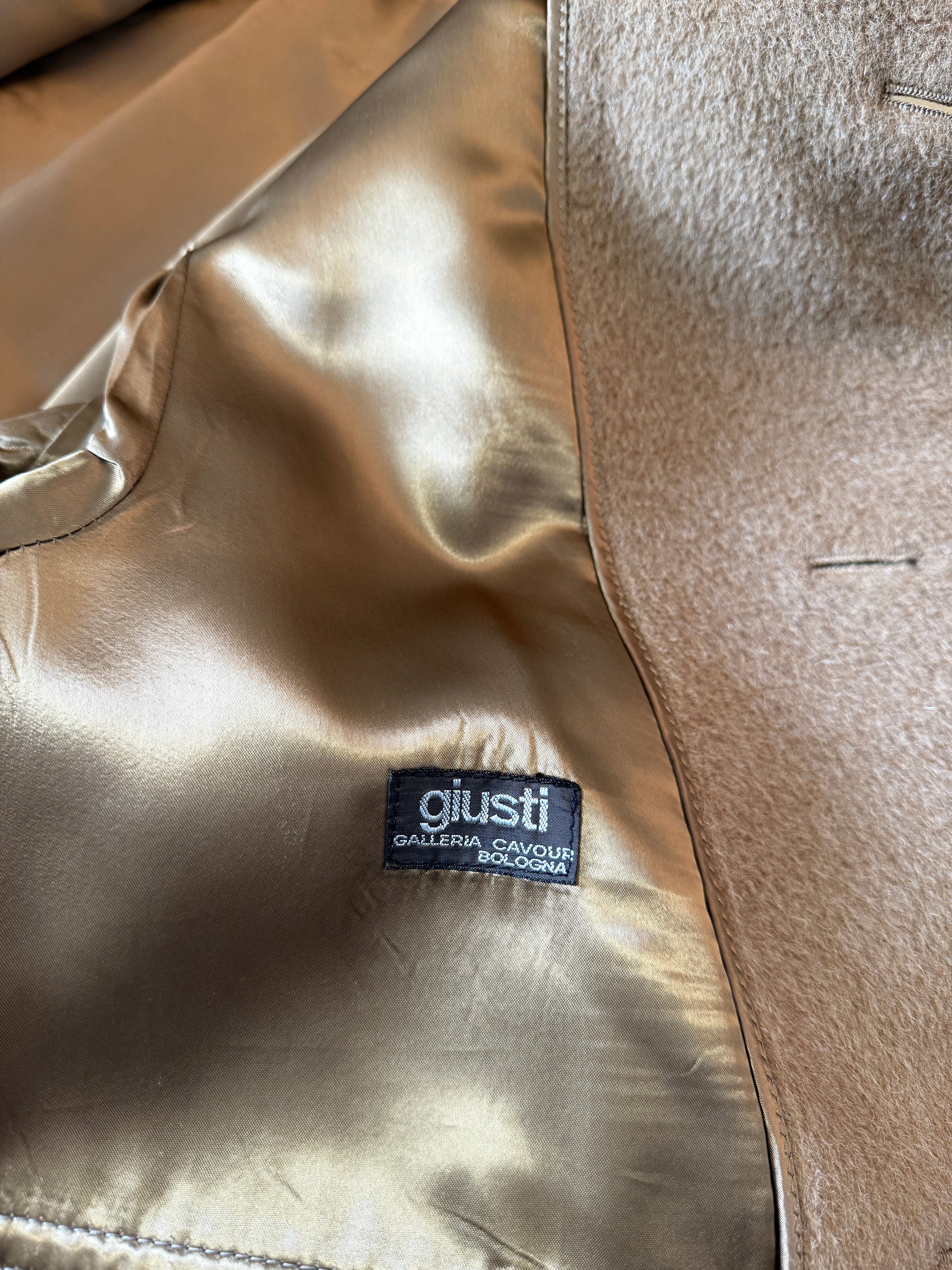 Cappotto raglan anni ‘70/‘80 in lana e lama color cammello - tg. 46-50