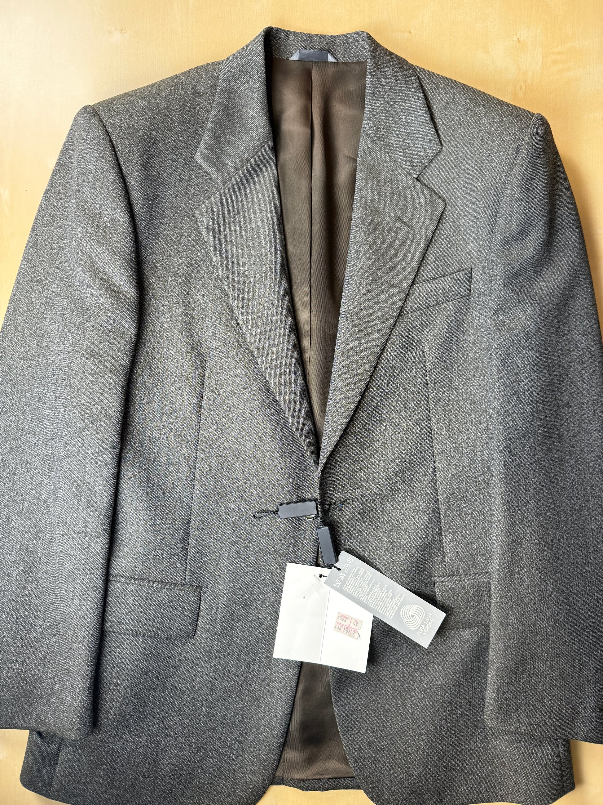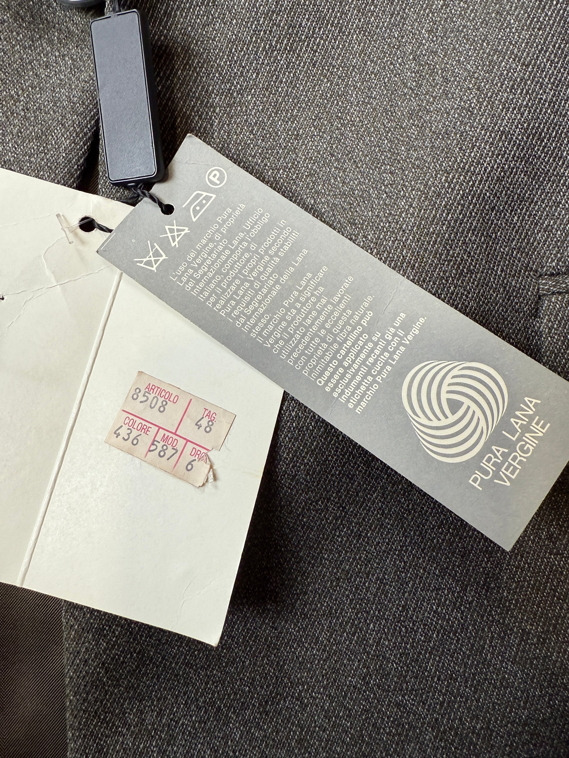 Completo anni ‘80 da fondo di magazzino, perfettamente nuovo con cartellino e pantaloni ancora da orlare.