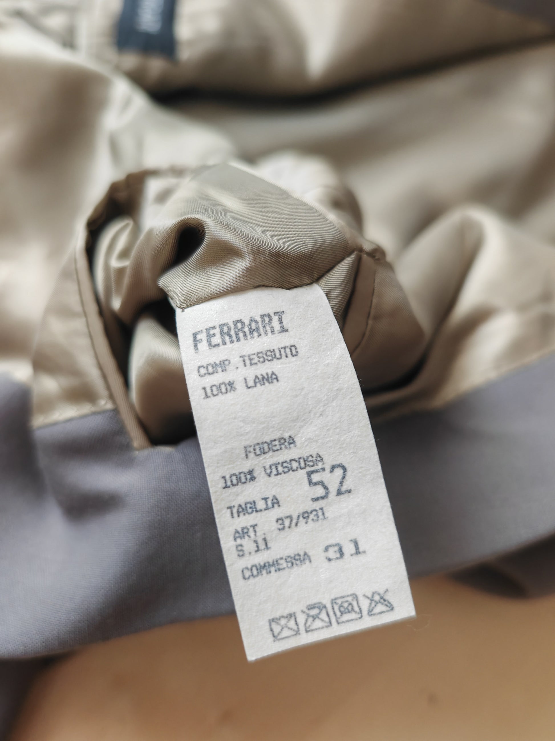 Giacca 2 bottoni senza spacchi e con tasche a pattina, con belle spalle molto strutturate e tagliate ampie come tipico dell'epoca.