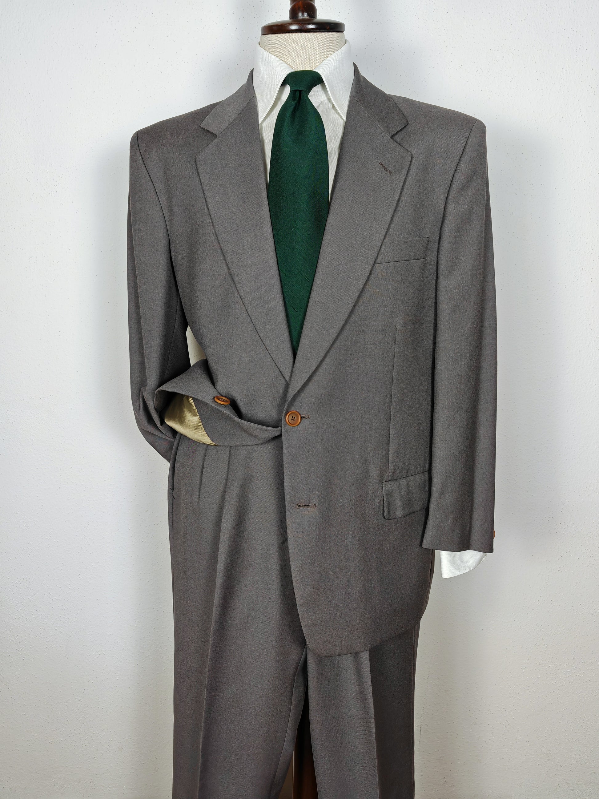 Completo anni '80 in fresco lana verde-grigio - tg. 50/52