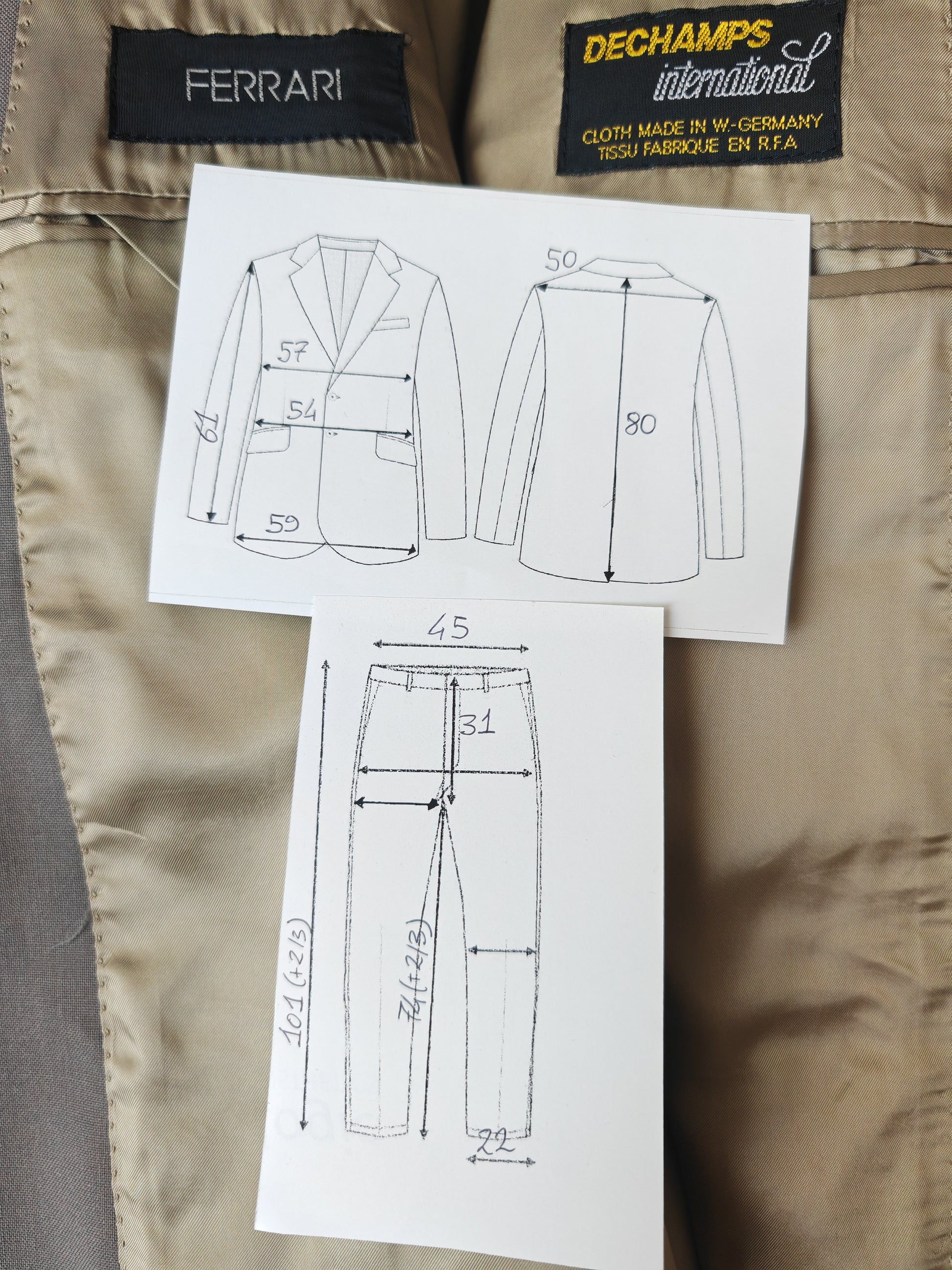 Taglia indicata 52: la giacca veste una 52 giusta, mentre il pantalone veste una 50/52 ma si può far allargare di un po'.