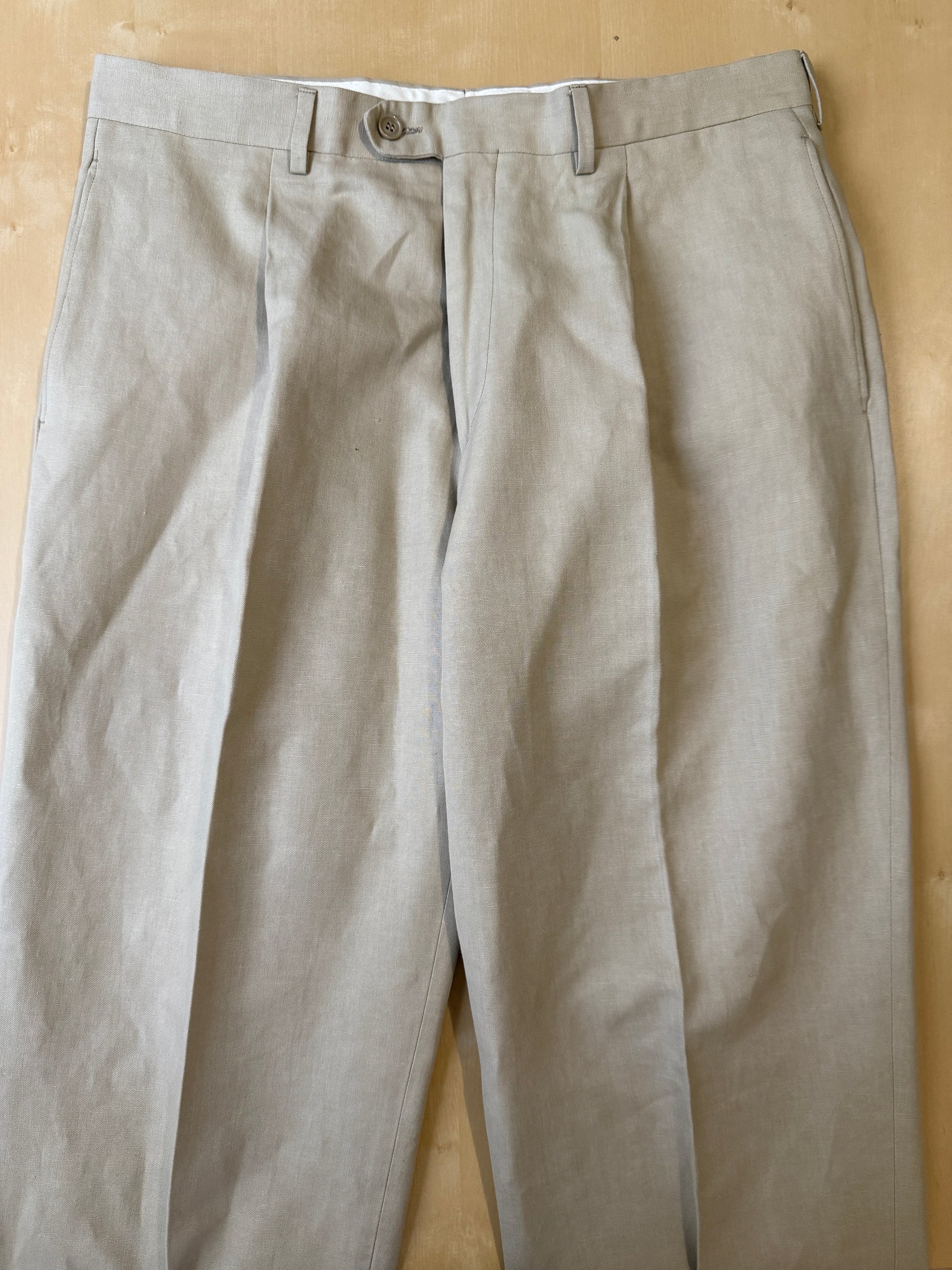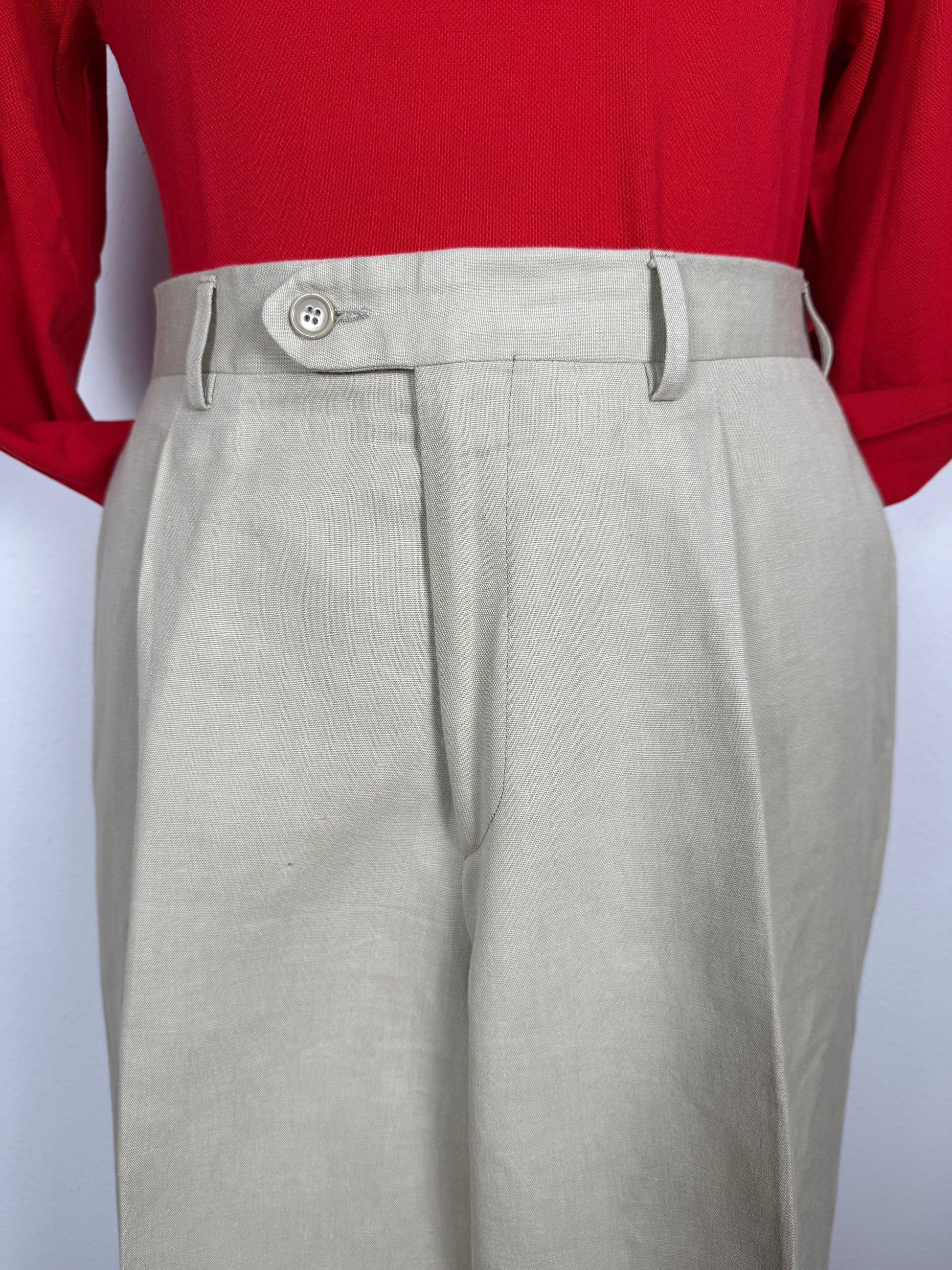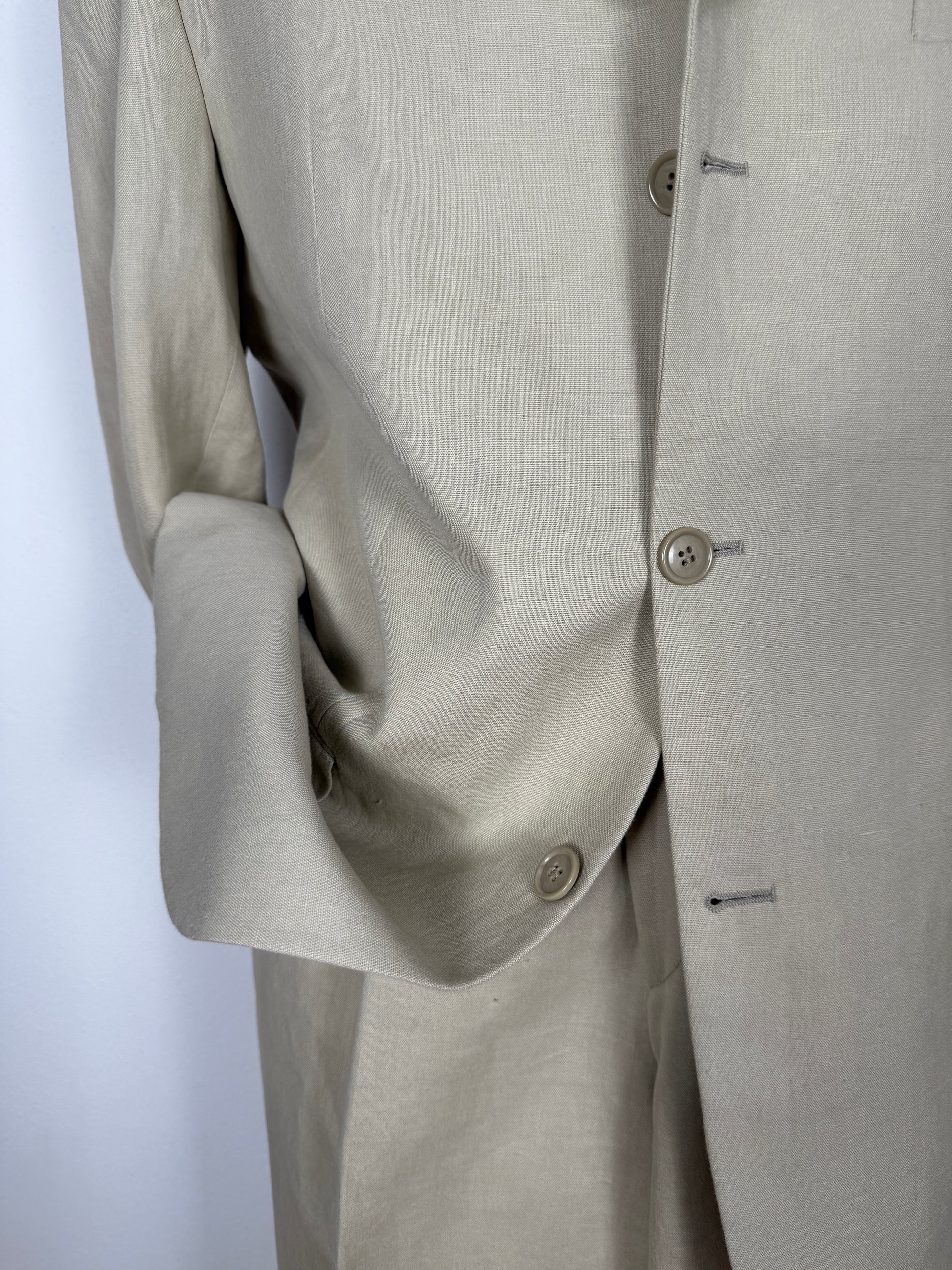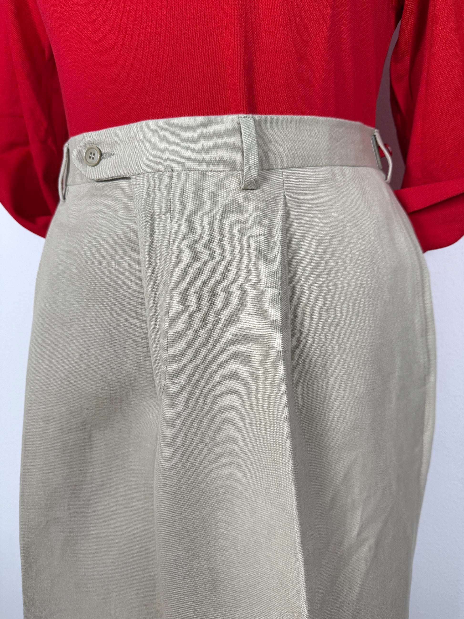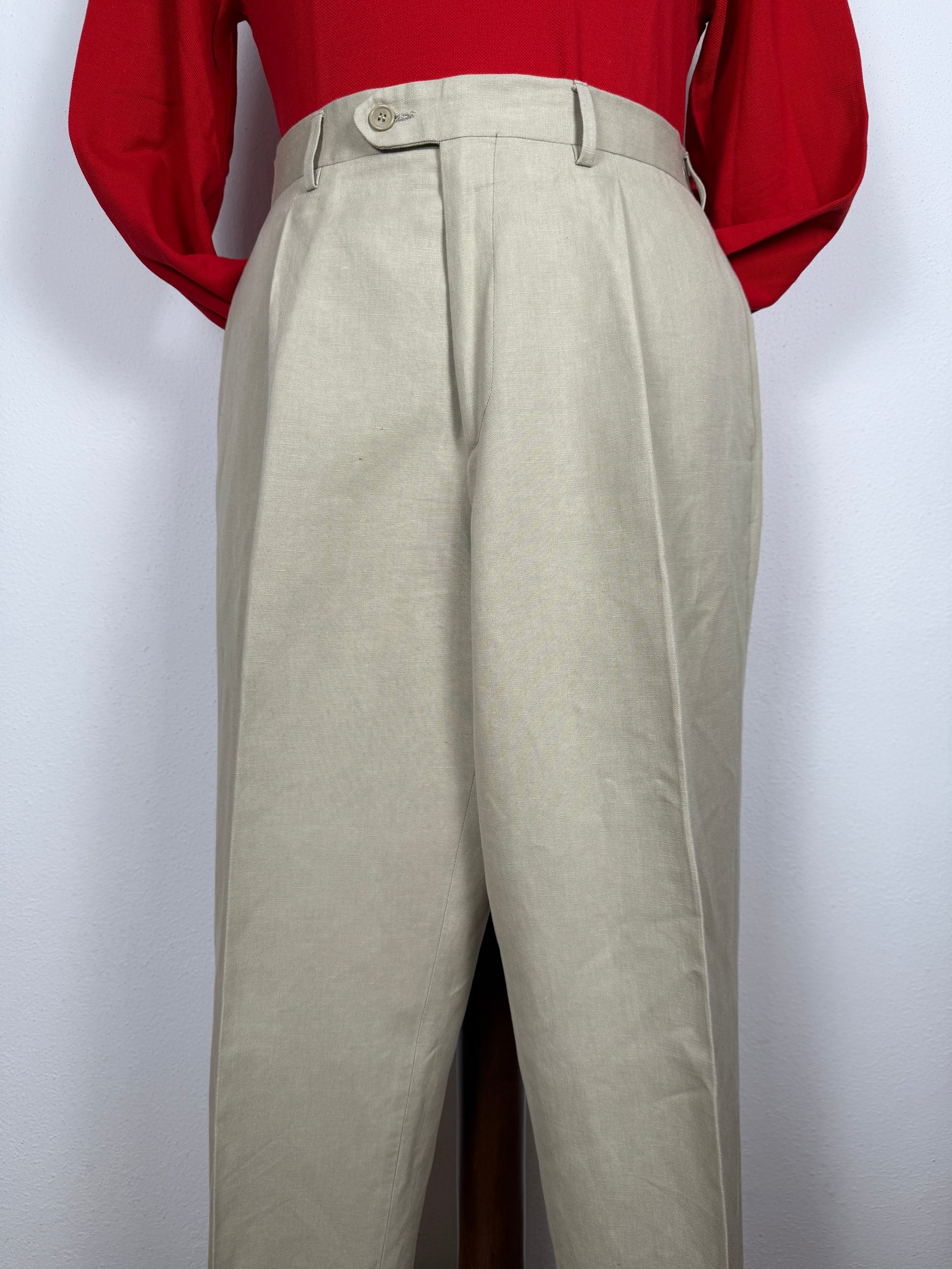 Abito anni '90/primi 2000 in un bel tessuto a tela sostenuta misto 50% lino e 50% cotone. Colore beige chiaro/sabbia.