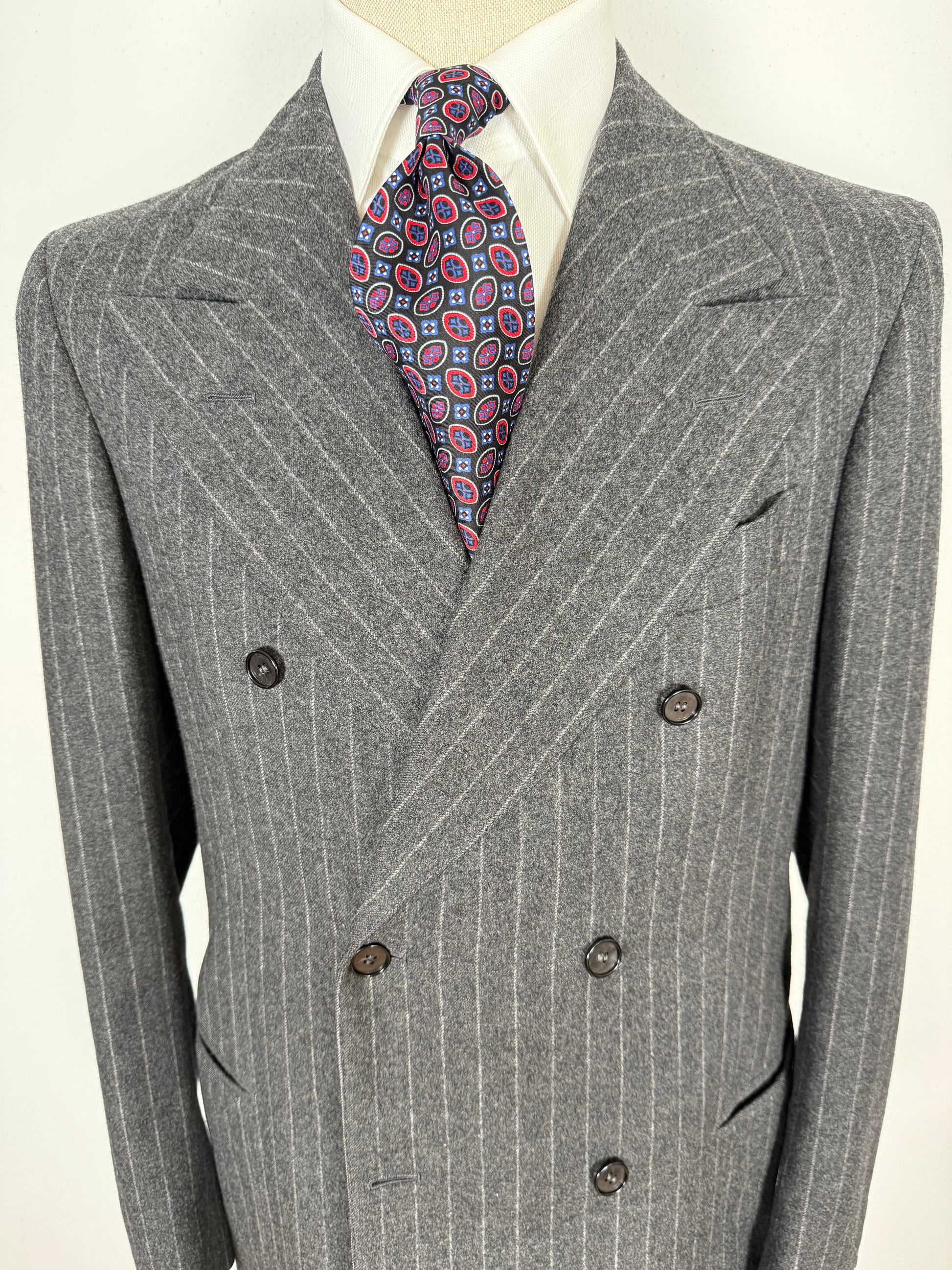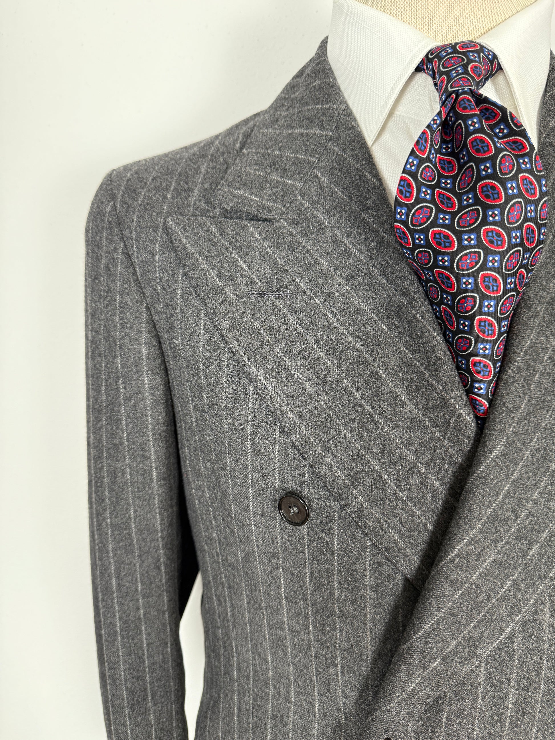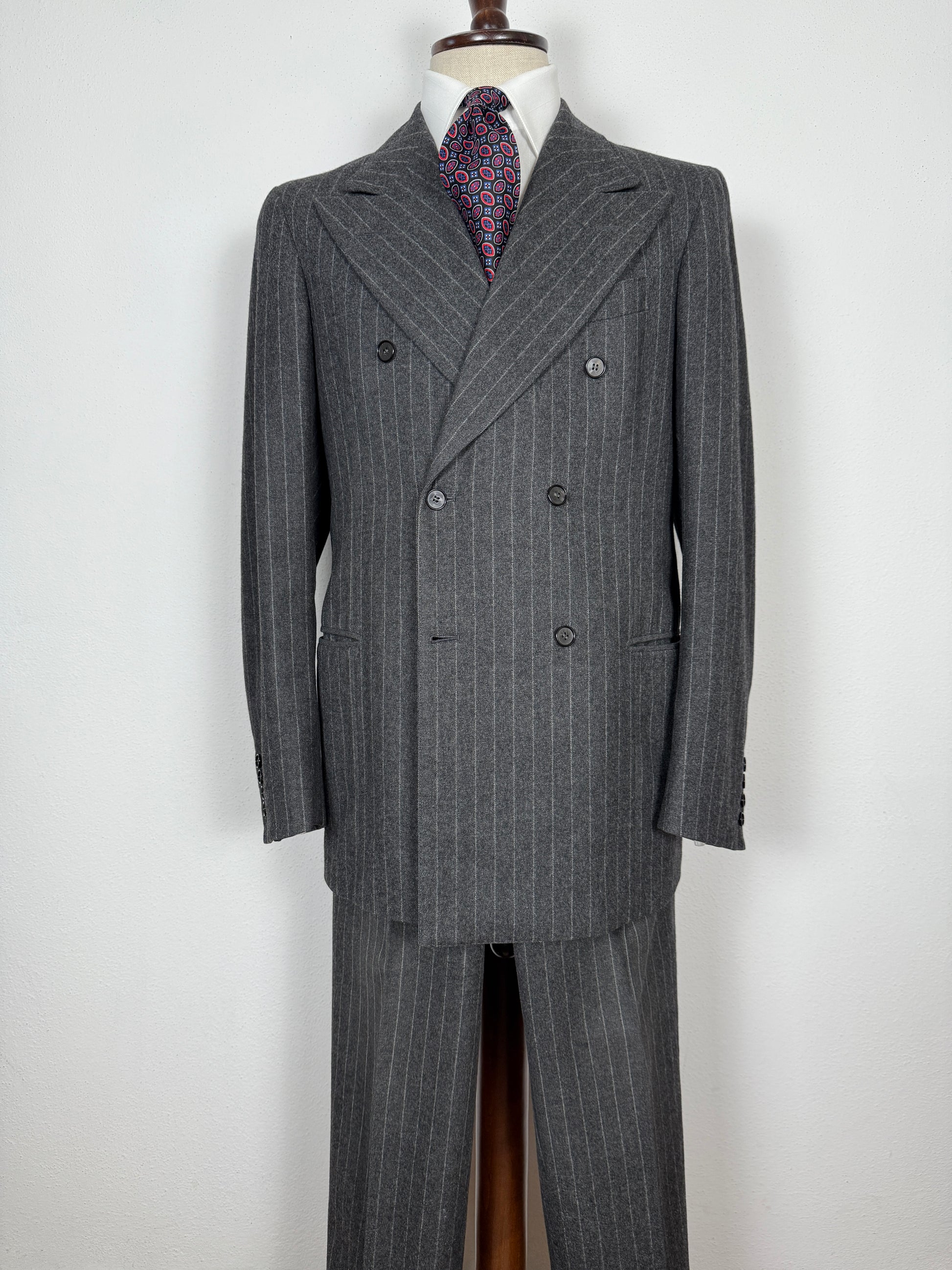Completo doppiopetto sartoriale anni ‘70 in flanella grigio gessato - tg. 50/52 drop basso