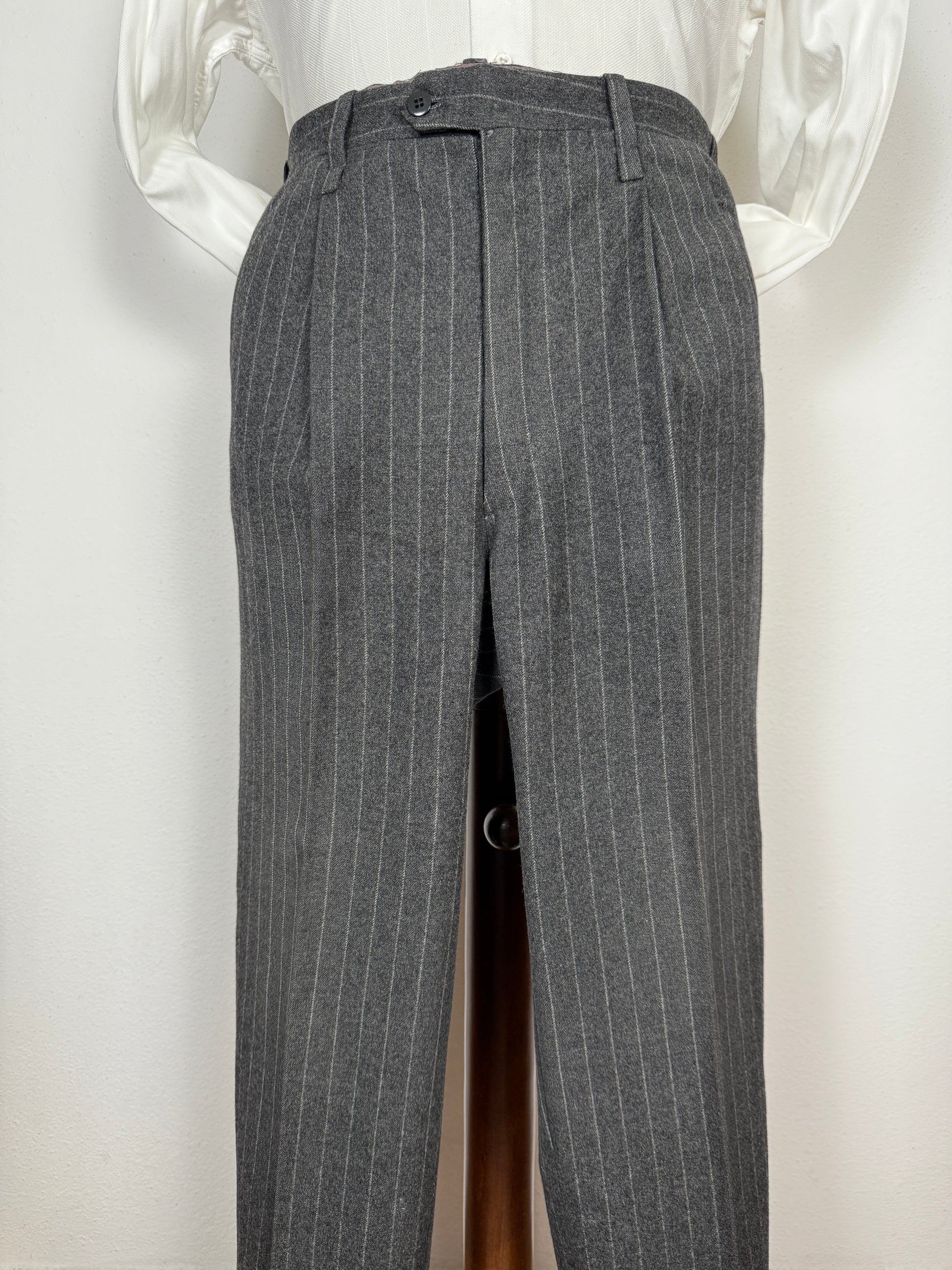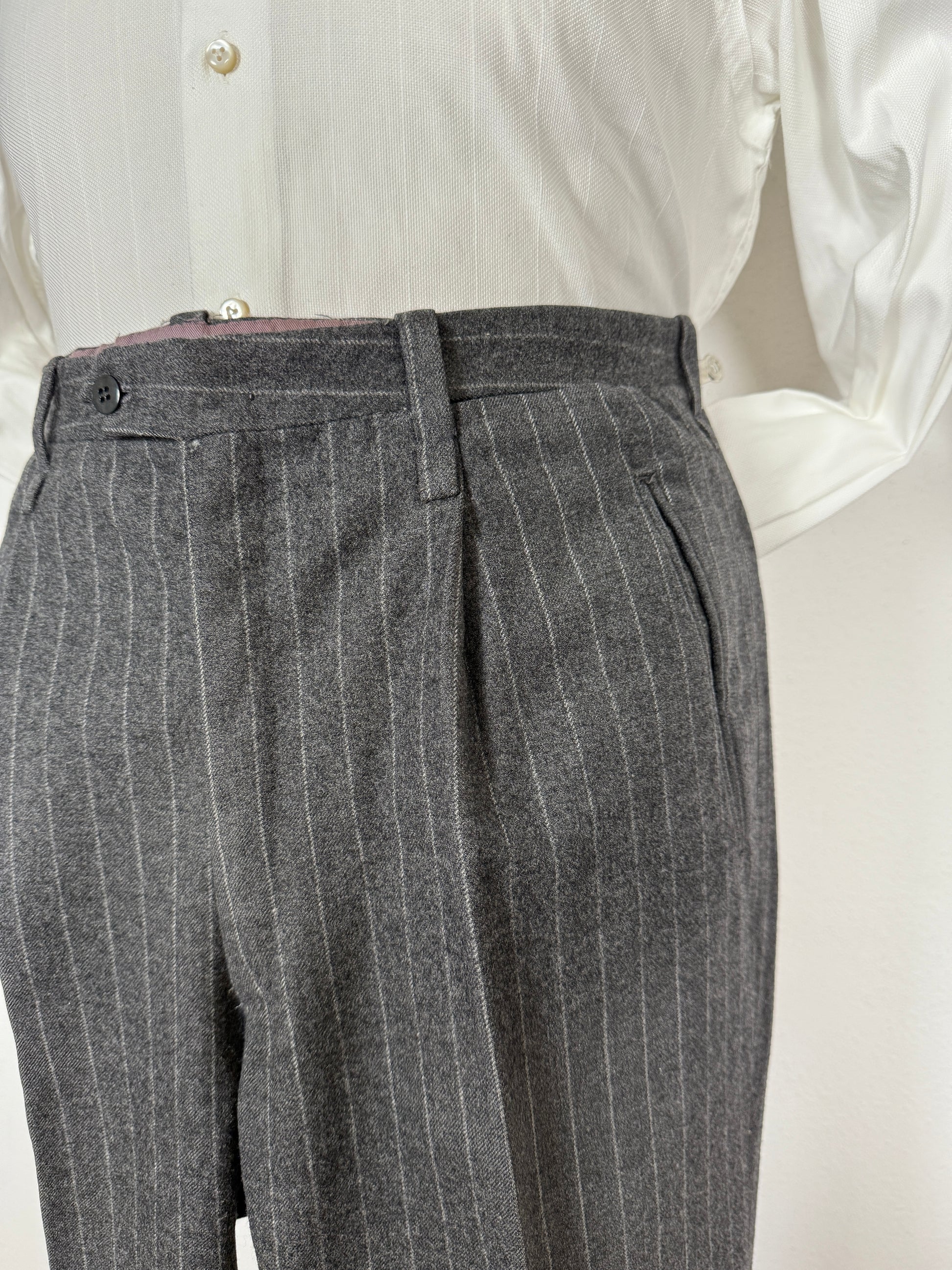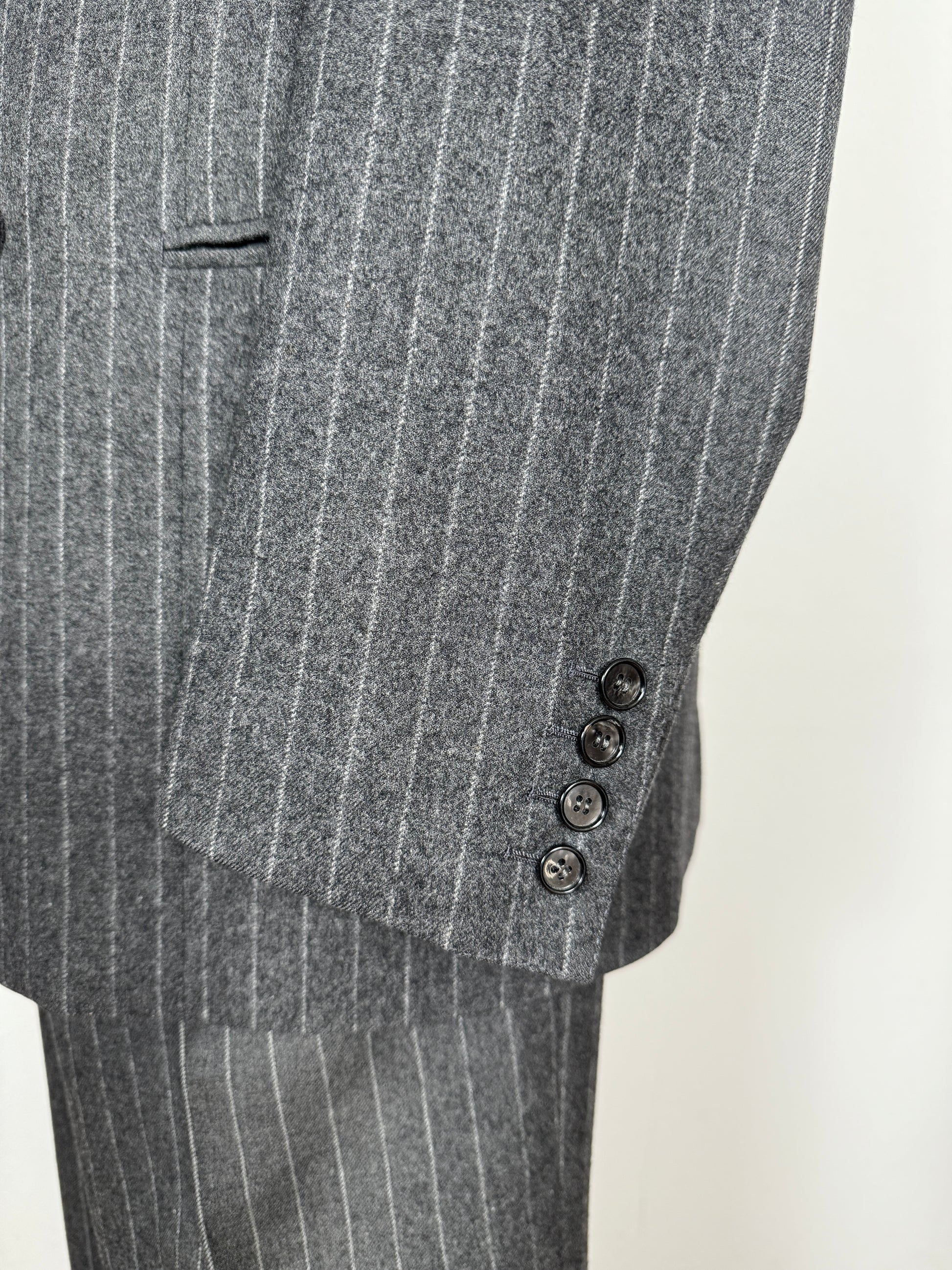 Completo doppiopetto sartoriale anni ‘70 in flanella grigio gessato - tg. 50/52 drop basso