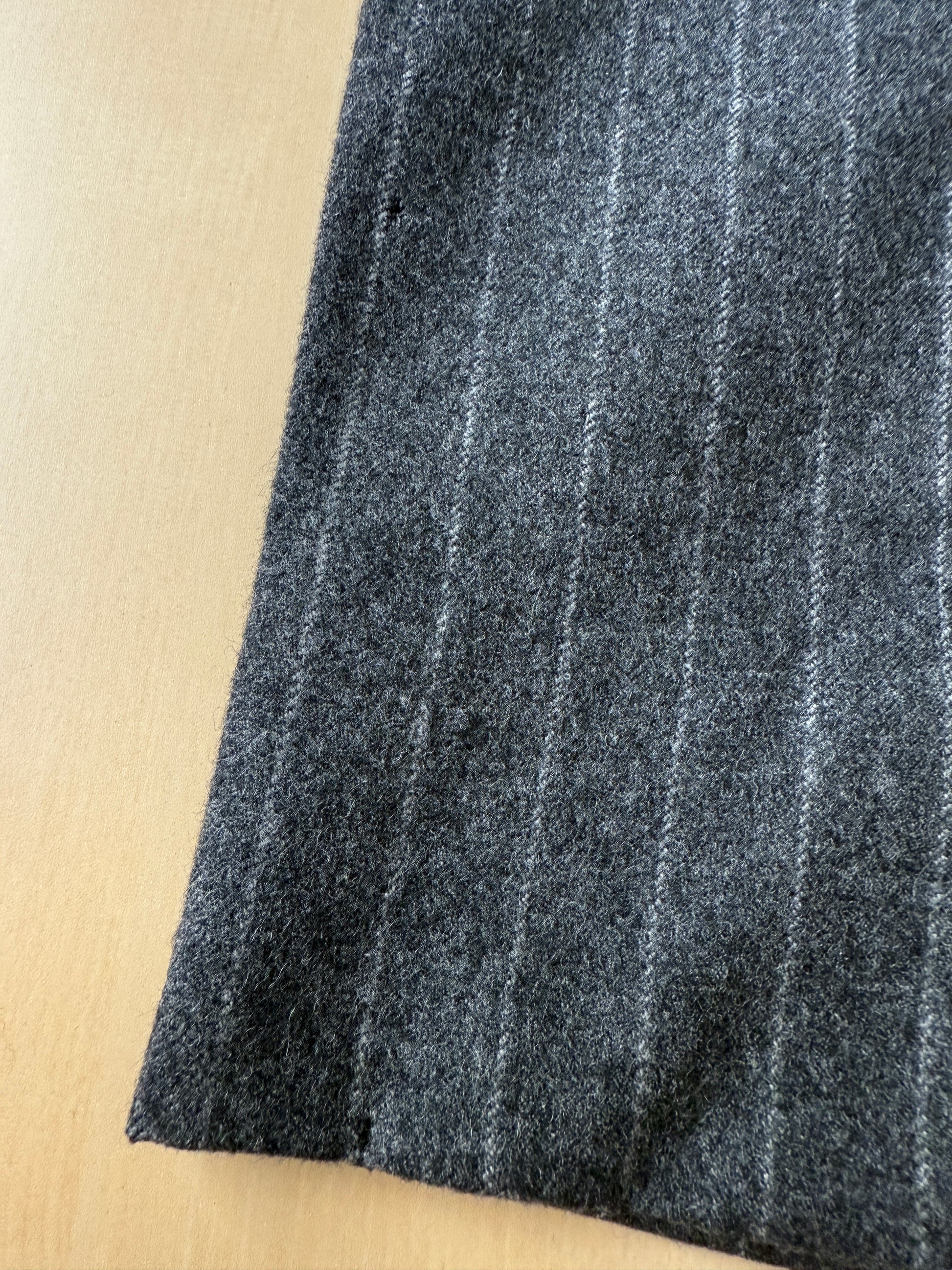 Stupendo abito doppiopetto anni ‘70 di confezione sartoriale, in flanella 100% lana pesantissima, colore grigio medio gessato.