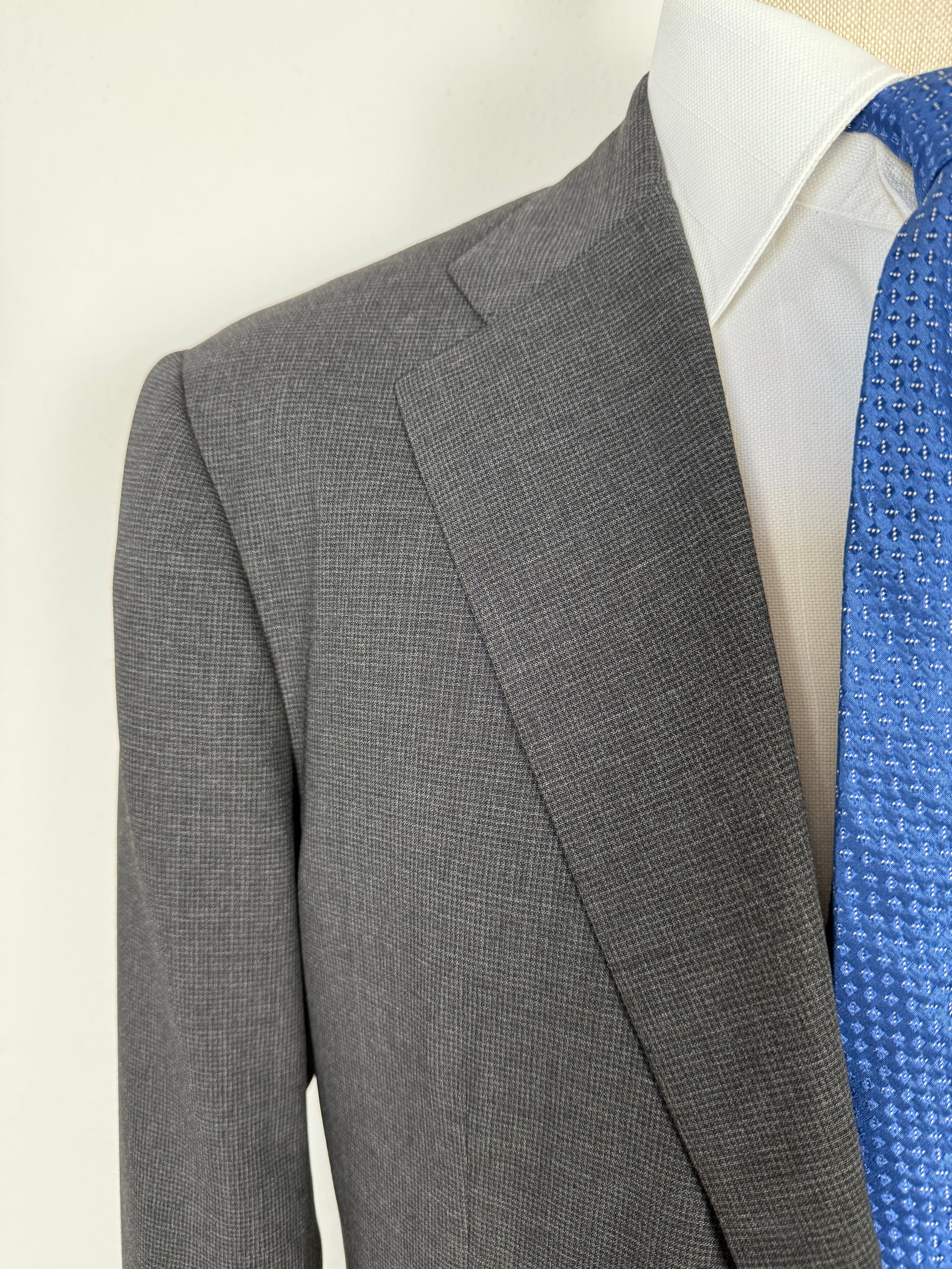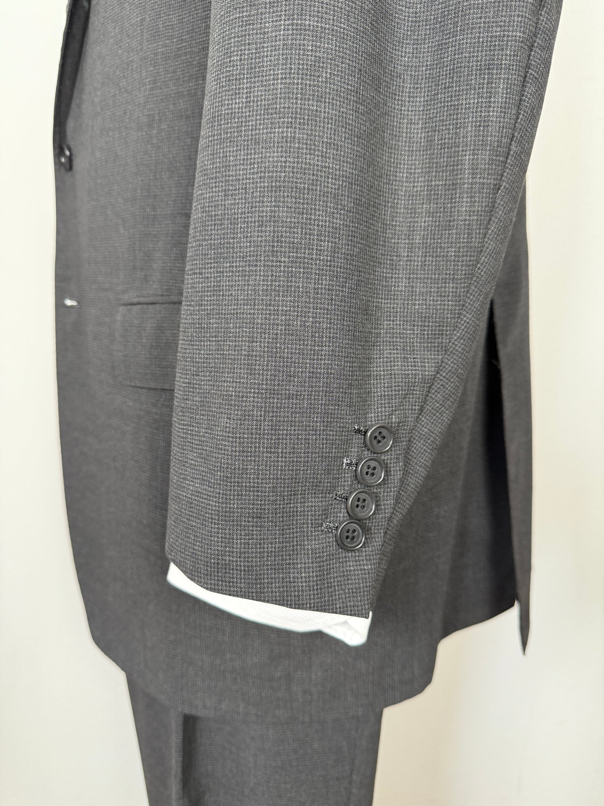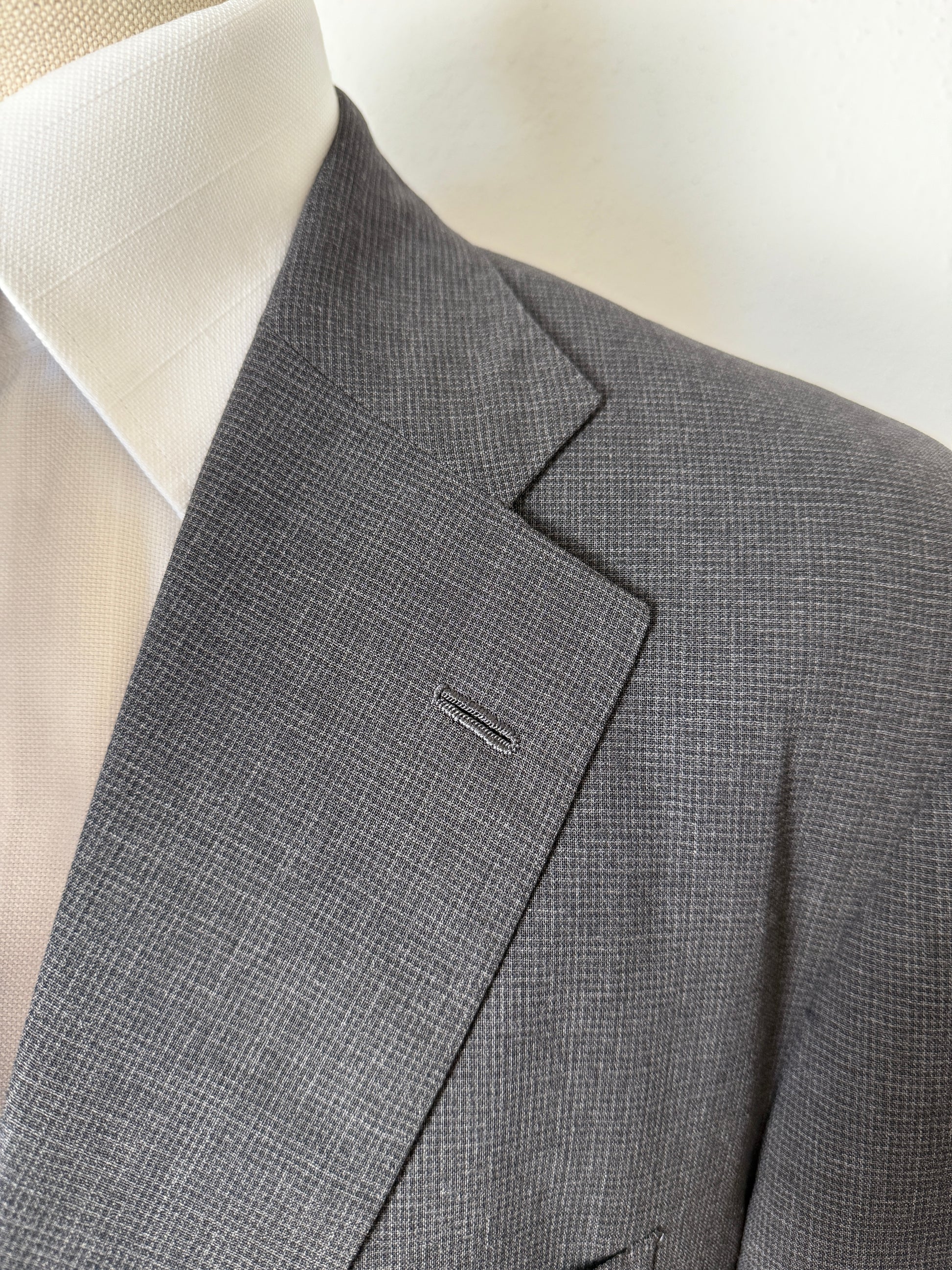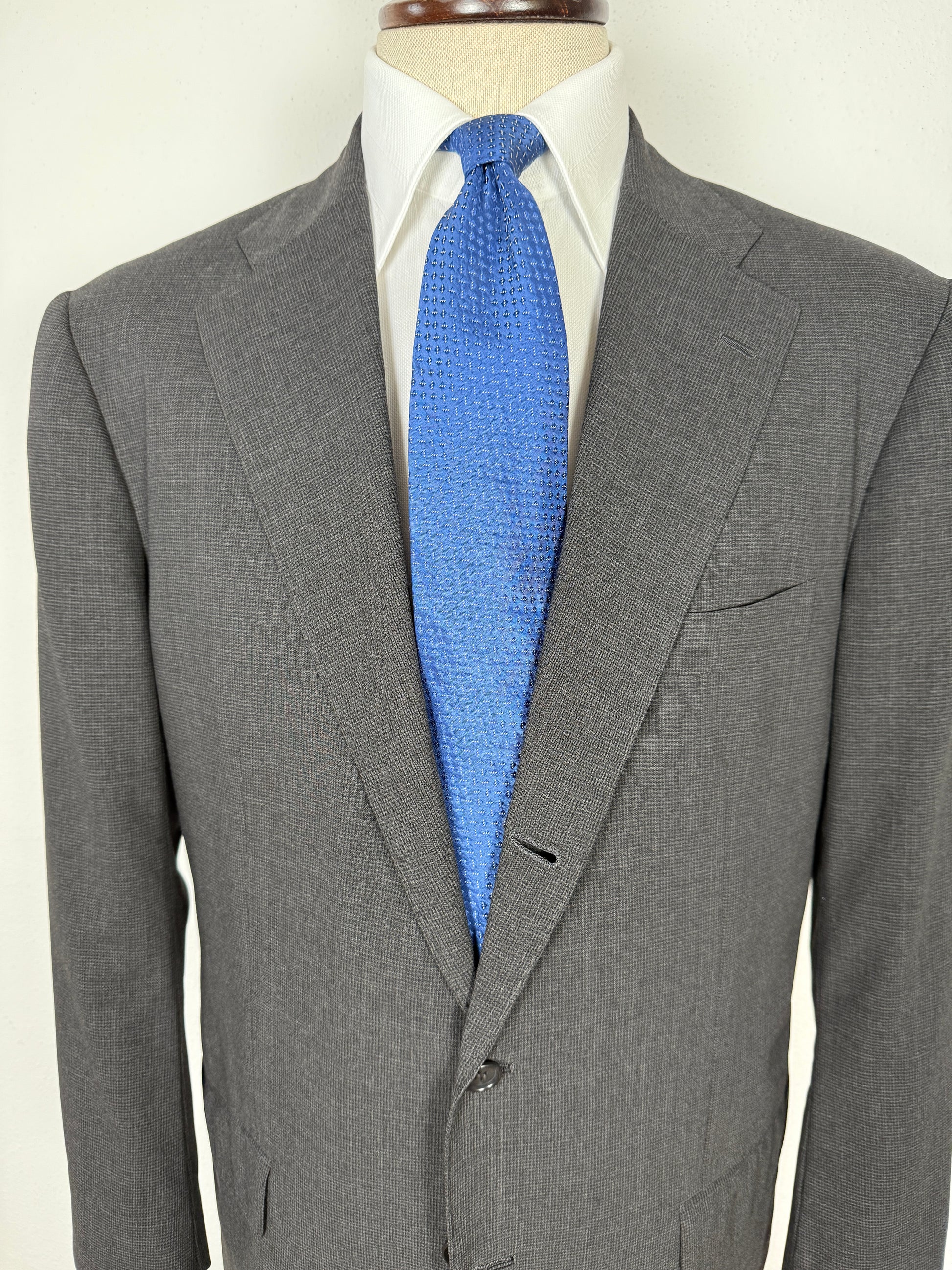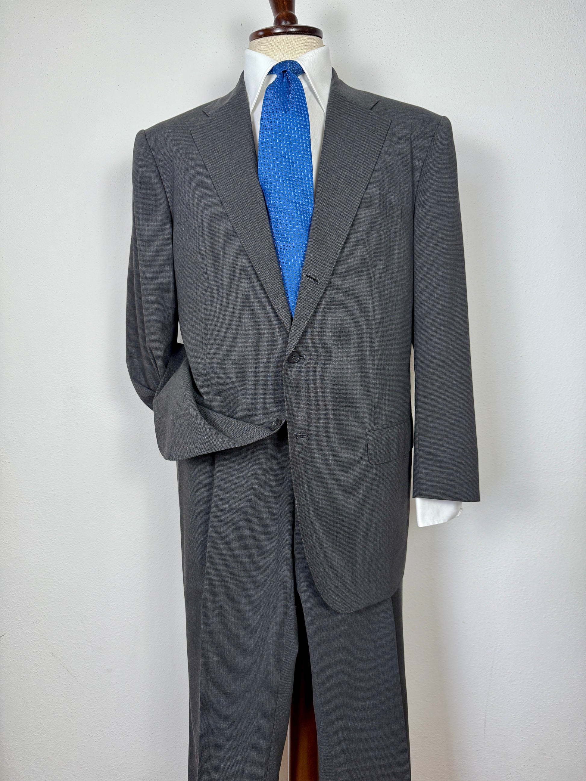 Abito Sartorio Napoli (gruppo Kiton) in leggerissimo fresco di lana 100%, armatura tela, colore grigio antracite con micro trama a quadrettini.